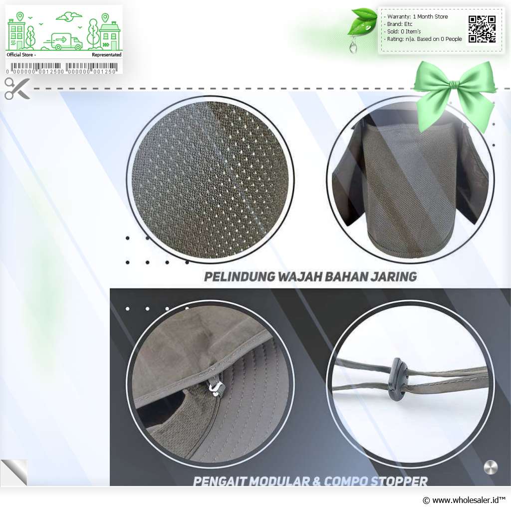 Dimensi | : | Diameter Topi 34 cm Tinggi Topi -/+ 10 cm Lingkar Kepala Sekitar 58 - 60 cm Pelindung Leher 50 x 27 cm Mesh Penutup Wajah 30 x 22 cm |