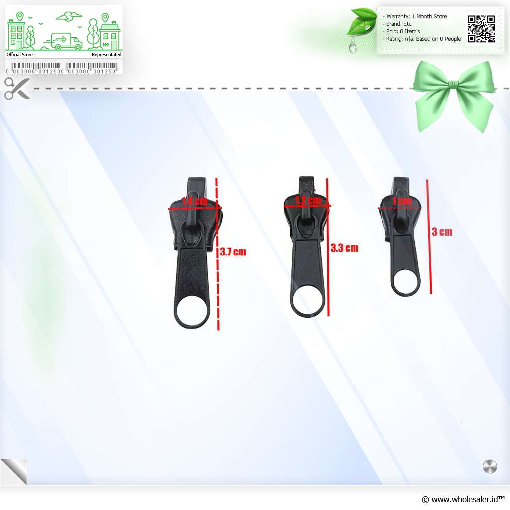 Memiliki 3 jenis variasi ukuran kepala ritsleting untuk berbagai kebutuhan.