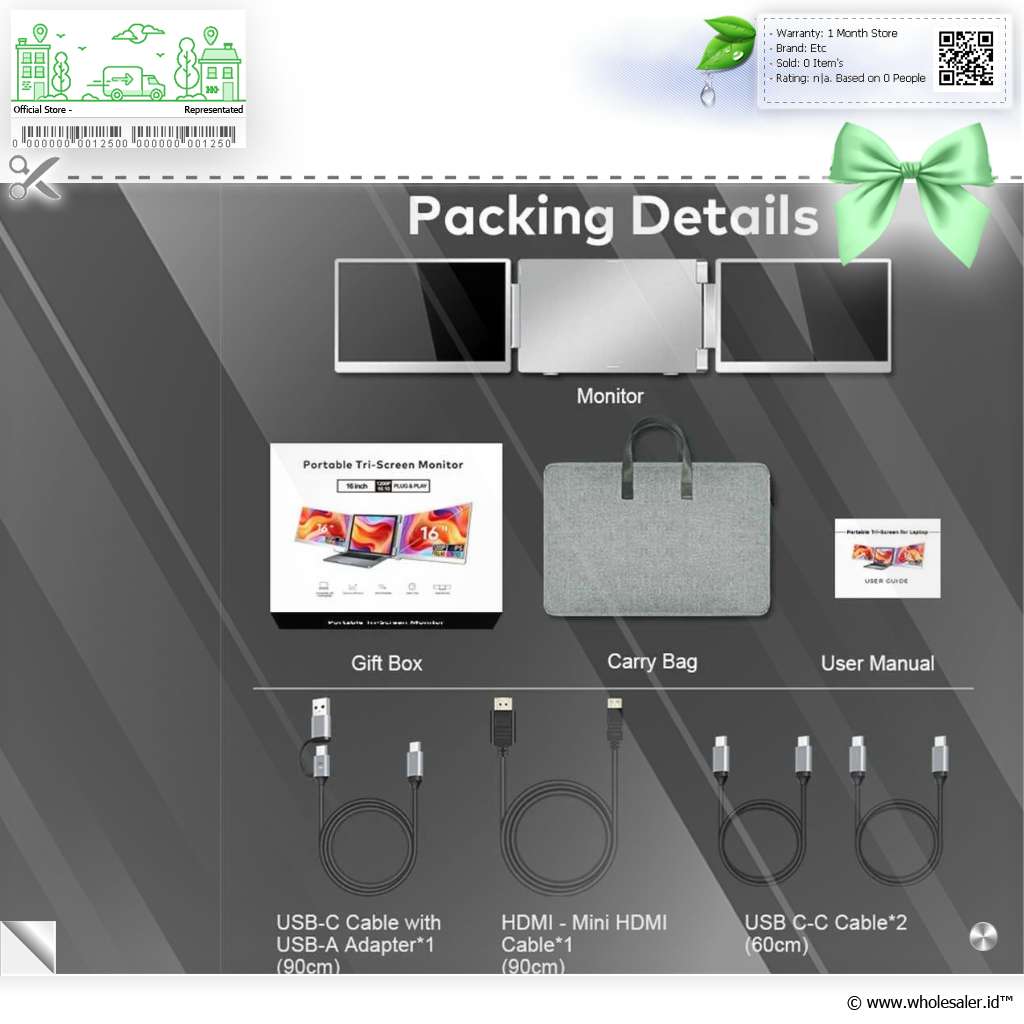 Kompatibilitas Luas Dibuat untuk berbagai kebutuhan, portable monitor ini dilengkapi port USB type C yang kompatibel dengan aneka laptop. |