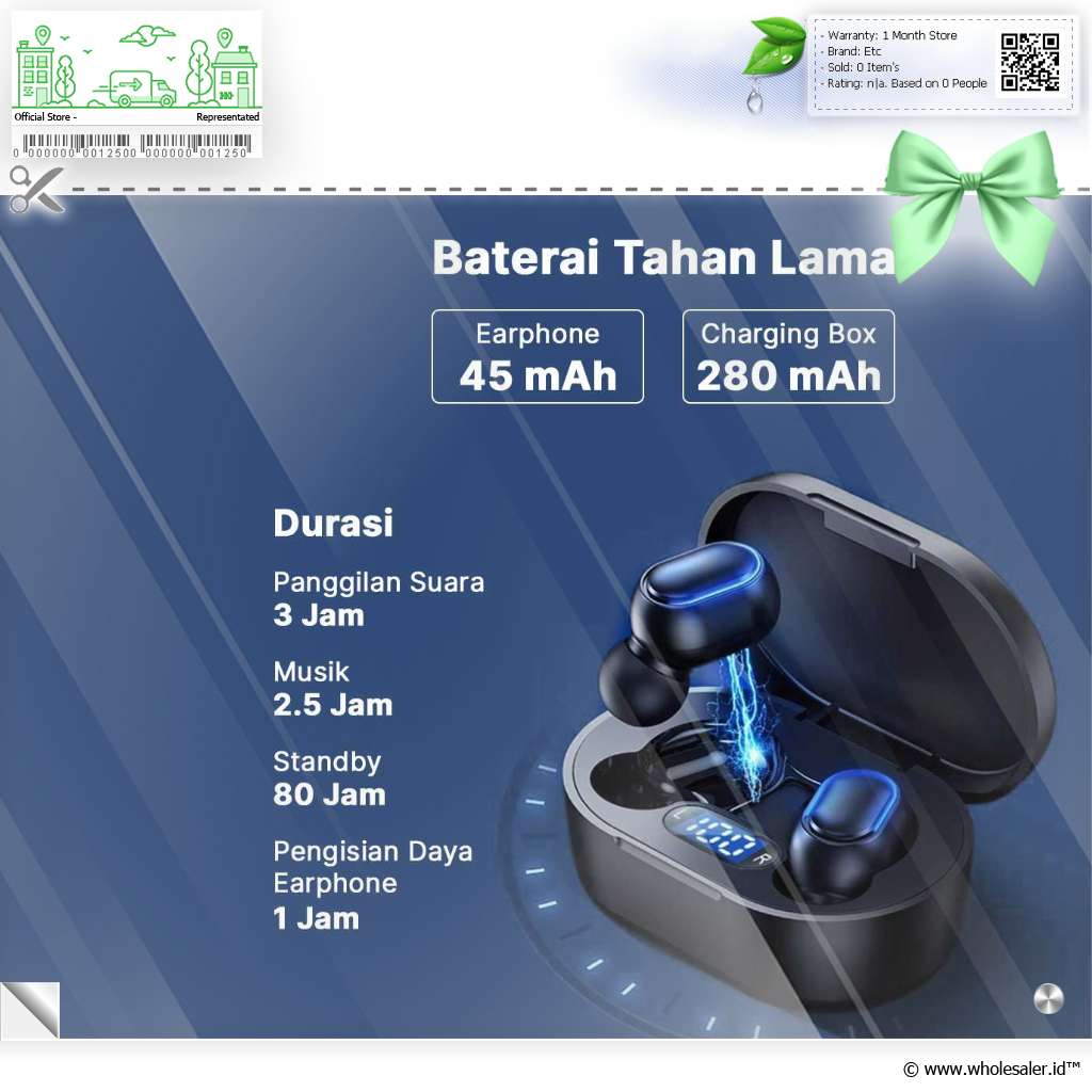 Kapasitas Baterai | : | Charging Case 280 mAh Earphone 45 mAh Waktu Pengisian Daya Earphone Sekitar 1 Jam Durasi Penggunaan Earphone - Musik Sekitar 2.5 Jam - Panggilan Suara Sekitar 3 Jam - Standby Sekitar 80 Jam |