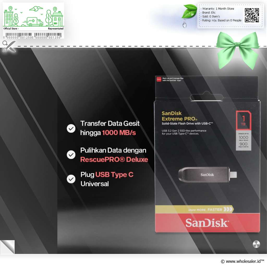 Simpan dan transfer file ke berbagai perangkat kini semakin cepat dan praktis menggunakan SanDisk Extreme PRO. Dibuat khusus untuk kebutuhan profesional, flashdisk ini memiliki kecepatan transfer hingga 1000 MB/s yang gesit. Plug USB Type C universal kompatibel dengan berbagai model laptop, smartphone, dan tablet.