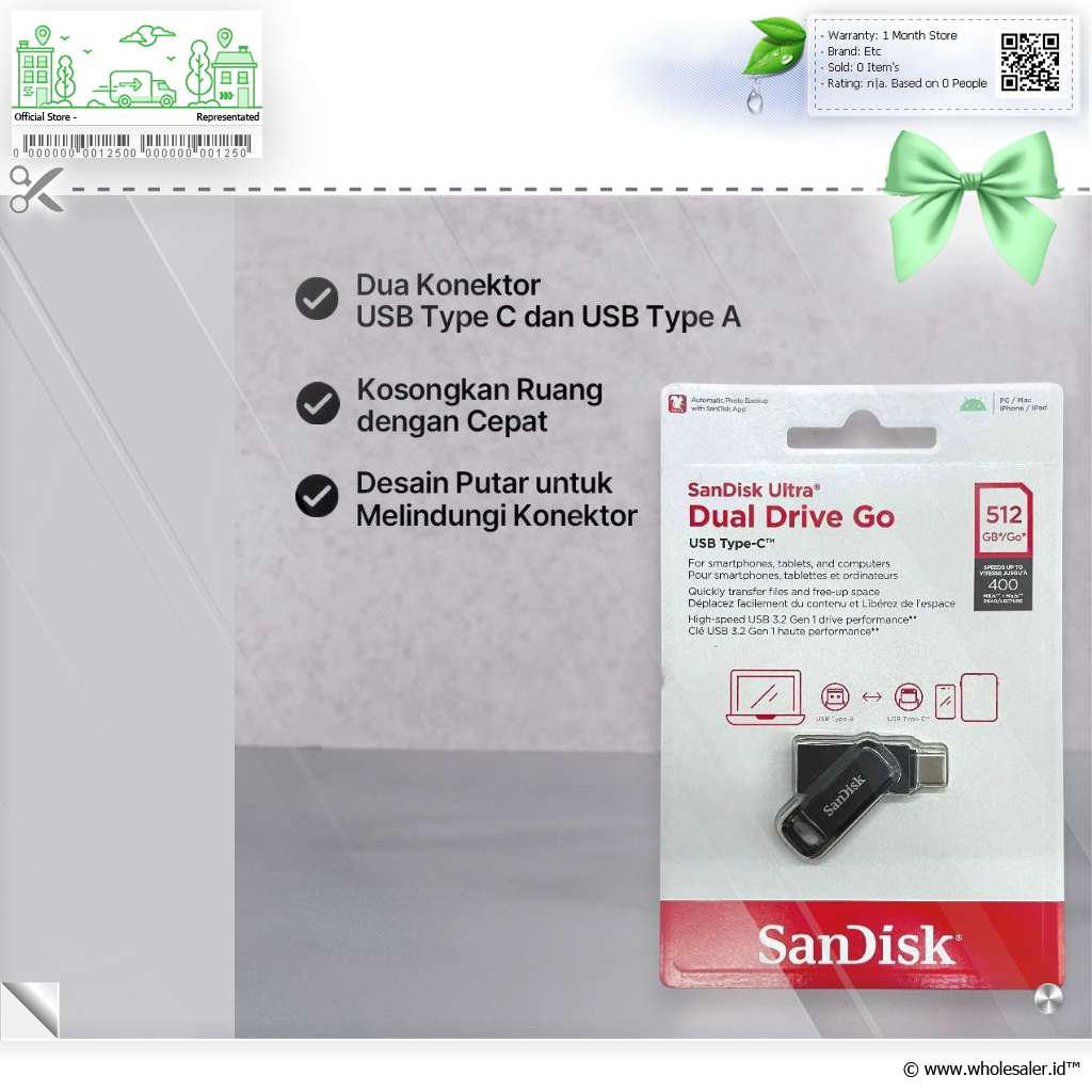 Mencari flashdisk yang dapat terhubung ke port USB Type C dan USB Type A dengan mudahInilah saatnya menggunakan SanDisk Ultra Dual Drive Go untuk menyimpan berbagai jenis file. Kehadiran dua jenis konektor pada flashdisk ini memungkinkan Anda untuk memindahkan file di berbagai perangkat, seperti smartphone, tablet, laptop, hingga komputer.