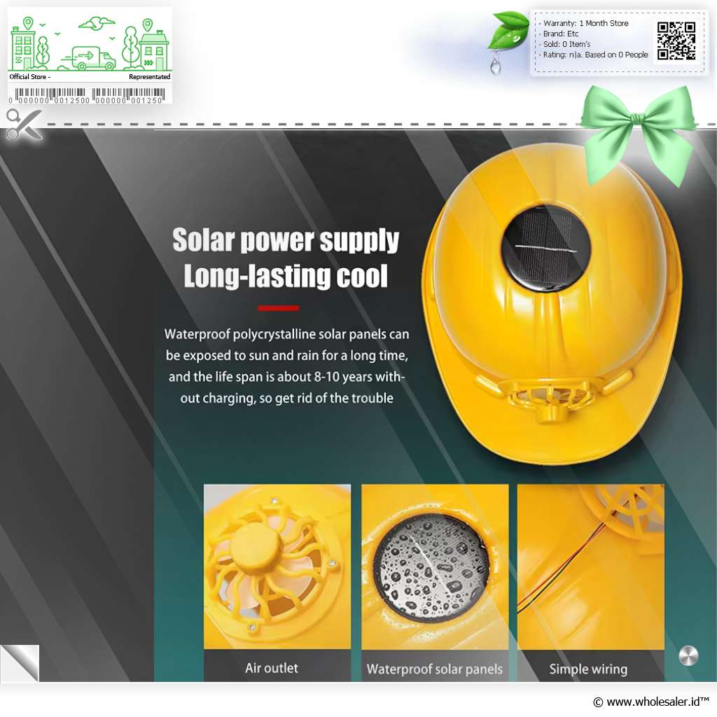 - 1 x SDJZT Helm Proyek Konstruksi K3 Kipas Tenaga Surya Safety PE Material - LM02