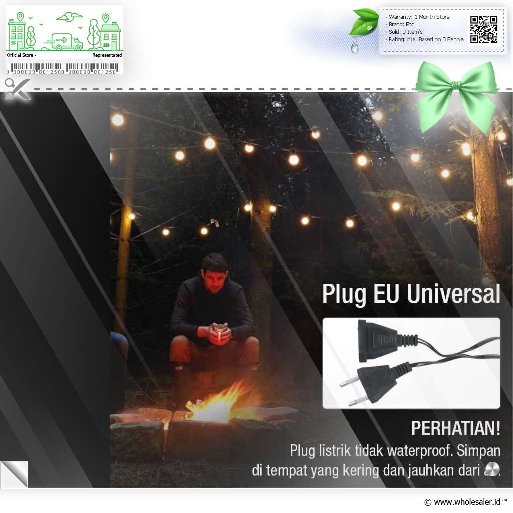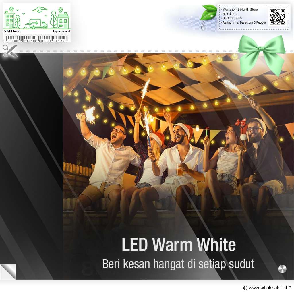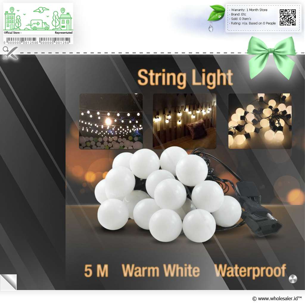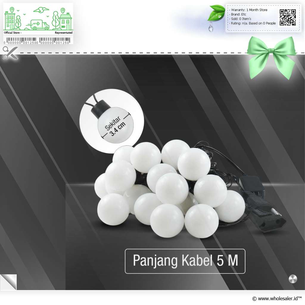 Dimensi | : | Diameter Bohlam Sekitar 3.4 cm Panjang Kabel 5 M Jarak Antar Lampu Sekitar 24 cm |