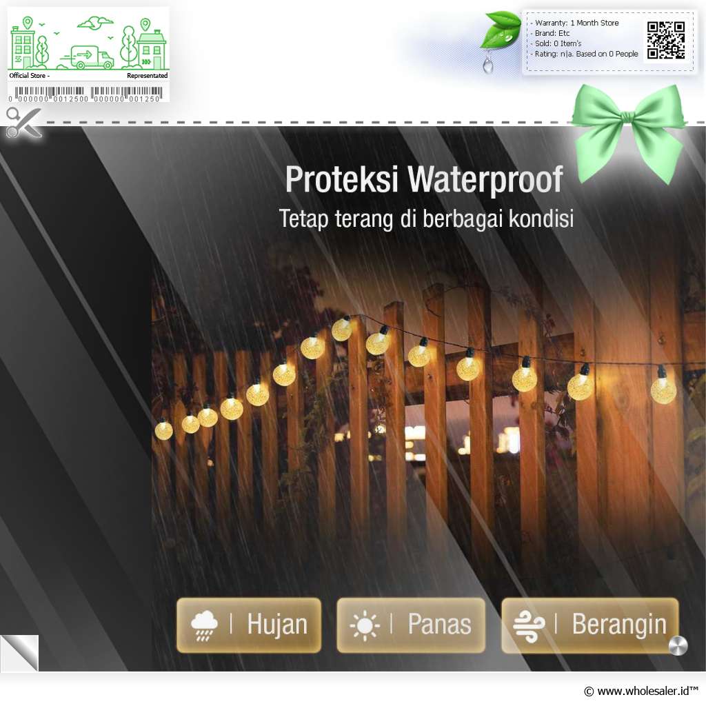 Proteksi Waterproof Proteksi waterproof yang digunakan membuat lampu hias tahan air dan debu. |