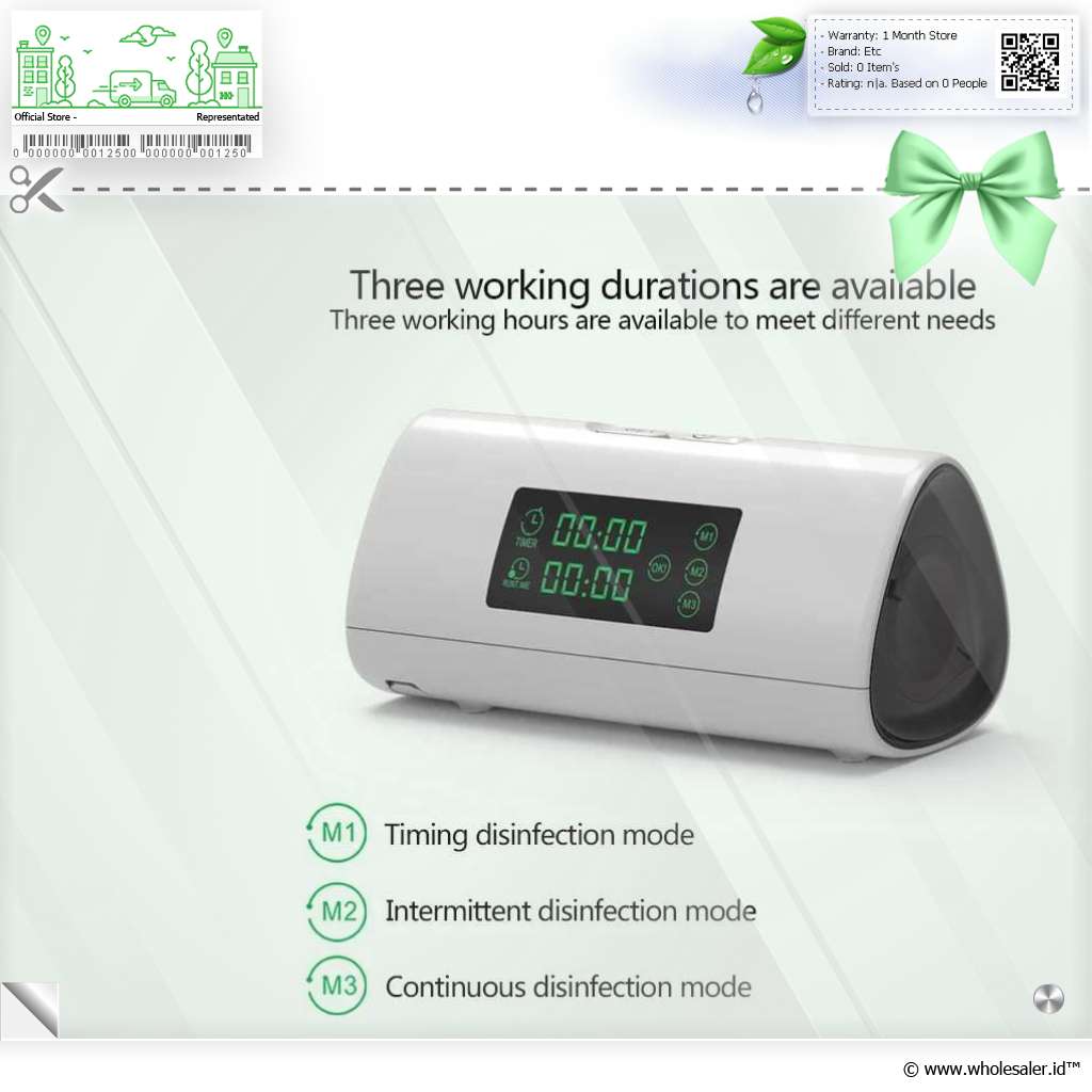 | Berbagai Mode Tersedia Tersedia 3 mode yang bisa Anda pilih sesuai dengan kebutuhan. M1 melakukan proses disinfeksi selama durasi tertentu sesuai waktu yang Anda pilih, M2 alat akan menyala dan mati secara bergantian, dan M3 alat bekerja non-stop dari awal hingga selesai tanpa jeda. Semua mode bisa Anda pilih dengan menekan tombol yang ada di layar digital. |