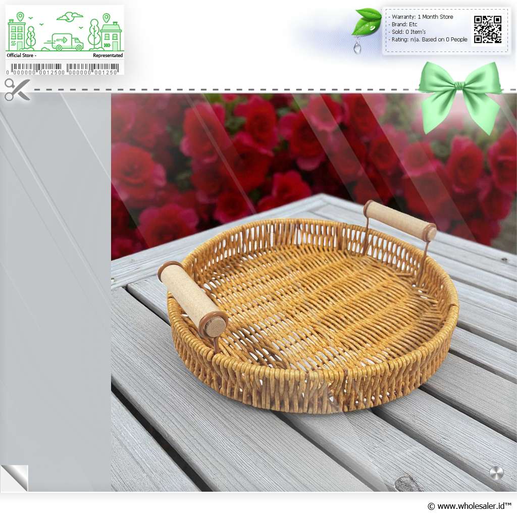 Informasi Produk Slyz Tatakan Nampan Rotan Fruit Tray Basket with Handle Model Round - Slyz21