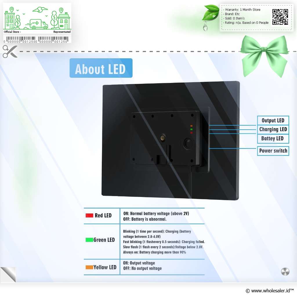 | Daya Mandiri Tanpa Ribet Panel surya dilengkapi 6 slot baterai 18650 berukuran standar, memudahkan Anda memasang baterai sesuai kapasitas yang Anda inginkan. Dengan sistem desain modular, panel tetap bekerja meski Anda menggunakan jumlah baterai yang berbeda. Baterai dapat digunakan sebagai cadangan daya saat malam hari, cuaca mendung, atau ketika sinar matahari kurang maksimal. |