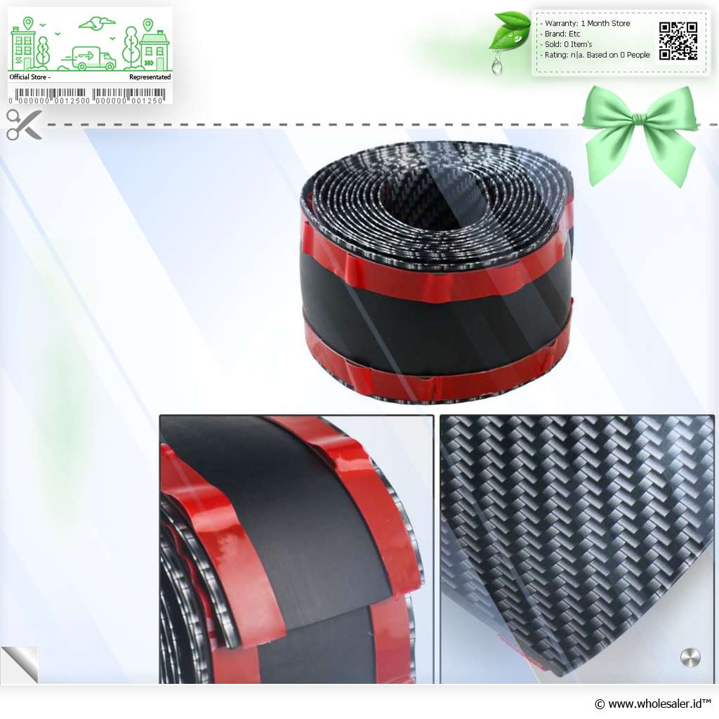 - 1 x Stiker Vinyl Mobil Carbon Fiber Rubber Strip Bumper Guard 5x250cm - C38404