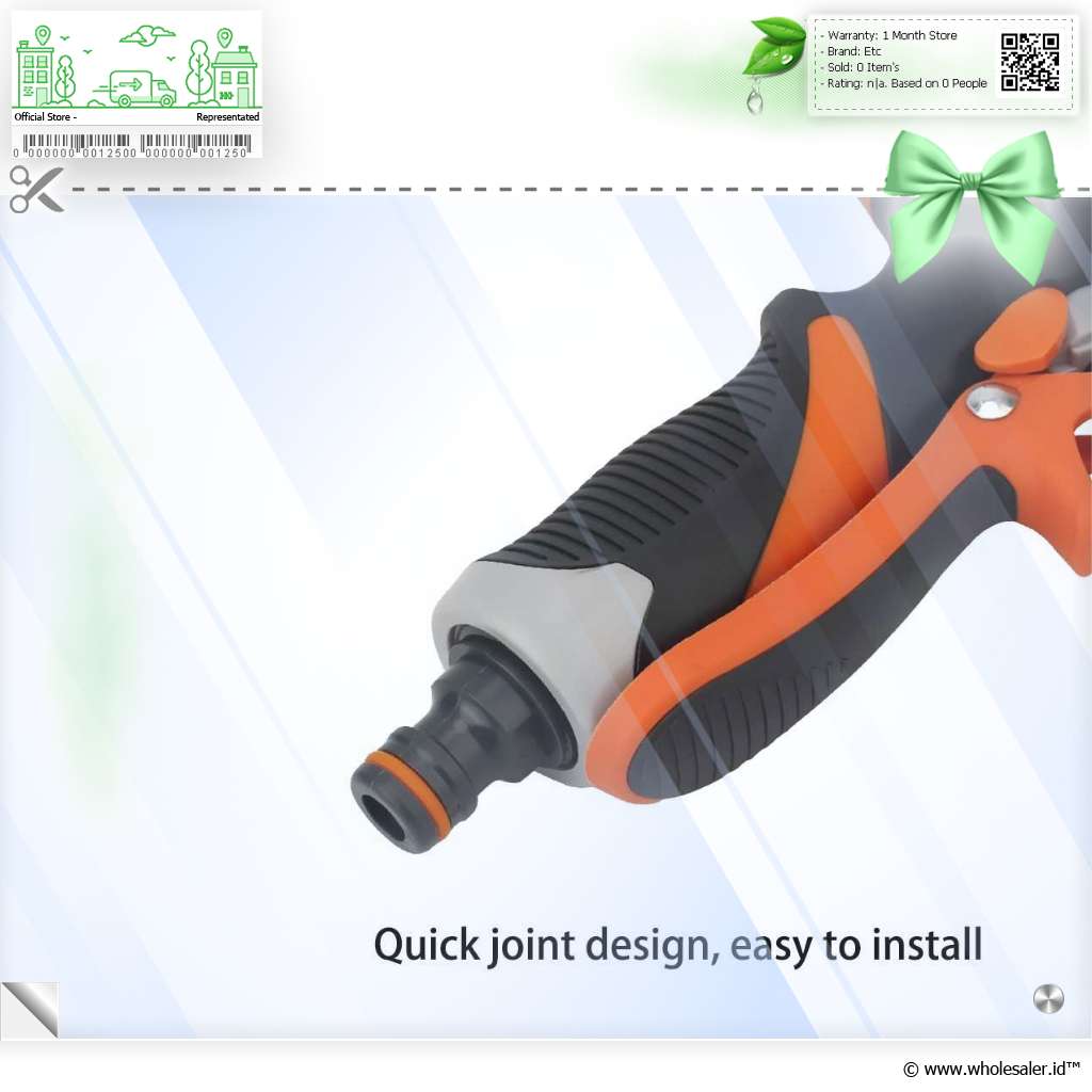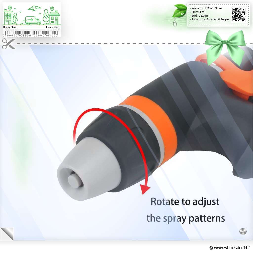 | Semprotan Air Tekanan Kuat Dengan desain bertekanan tinggi, semprotan ini mampu menghasilkan pancaran air yang jauh dan bertenaga, ideal untuk mencuci mobil, motor, jendela rumah, hingga membersihkan peralatan outdoor. Tekanan air dapat diatur dari semburan fokus yang kuat untuk kotoran membandel hingga spray lembut untuk tanaman sensitif. |