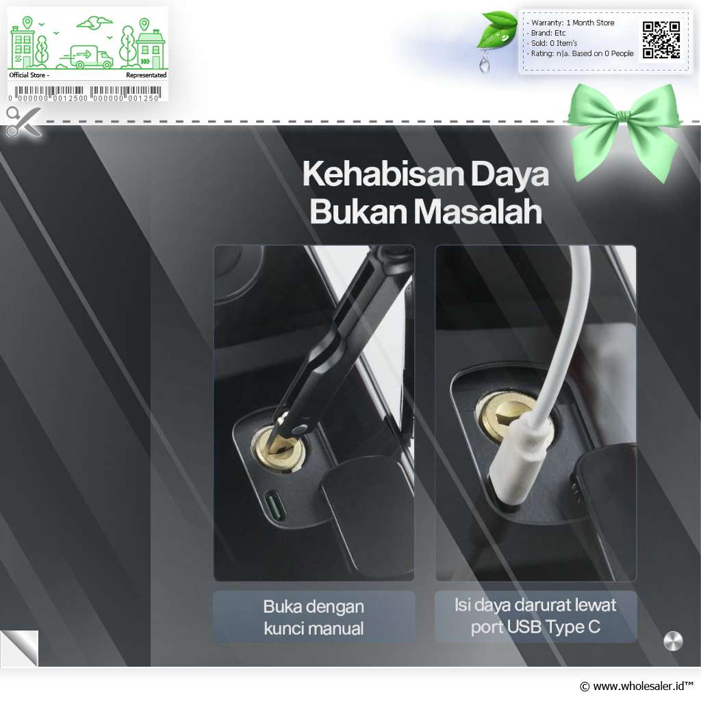 | Kehabisan Daya Bukan Masalah Daya smart door lock habis saat digunakanTak perlu khawatir. |