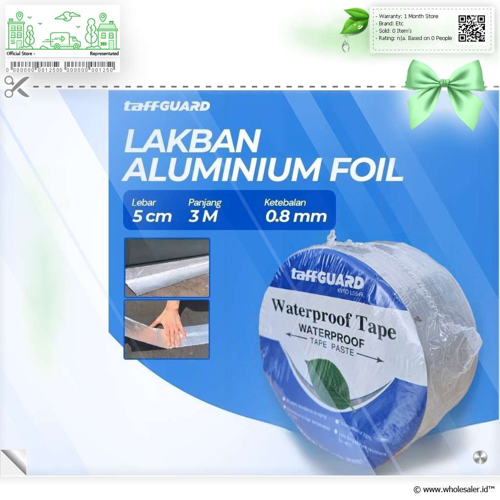 Lakban aluminium foil dari TaffGUARD KYTO mampu melapisi dan memperbaiki berbagai permukaan atau peralatan yang bocor, retak, dan masalah lainnya. Hadir dengan ketebalan 0.8 mm, memiliki daya rekat yang tinggi, tahan panas dan tahan air, serta tahan gores dari benda-benda tajam. Cocok digunakan untuk aplikasi ke berbagai permukaan seperti besi, plastik, tembok, lantai, dan masih banyak lagi.