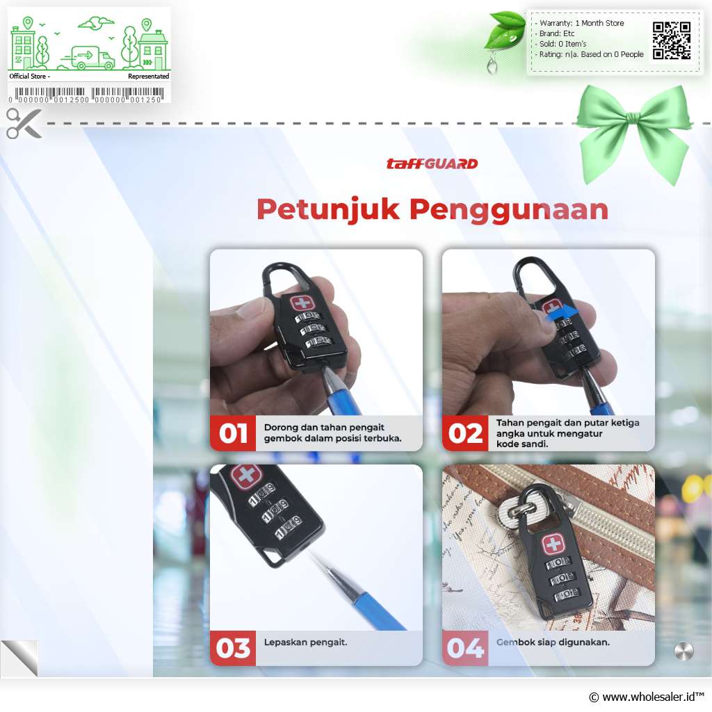 | 3 Angka Lebih Aman Tak ada lagi gembok yang mudah dijebol. Produk TaffGUARD menggunakan kombinasi 3 angka yang membuatnya sulit dibobol. Anda bisa membuat hingga 1000 variasi kode untuk menjaga keamanan barang bawaan. |