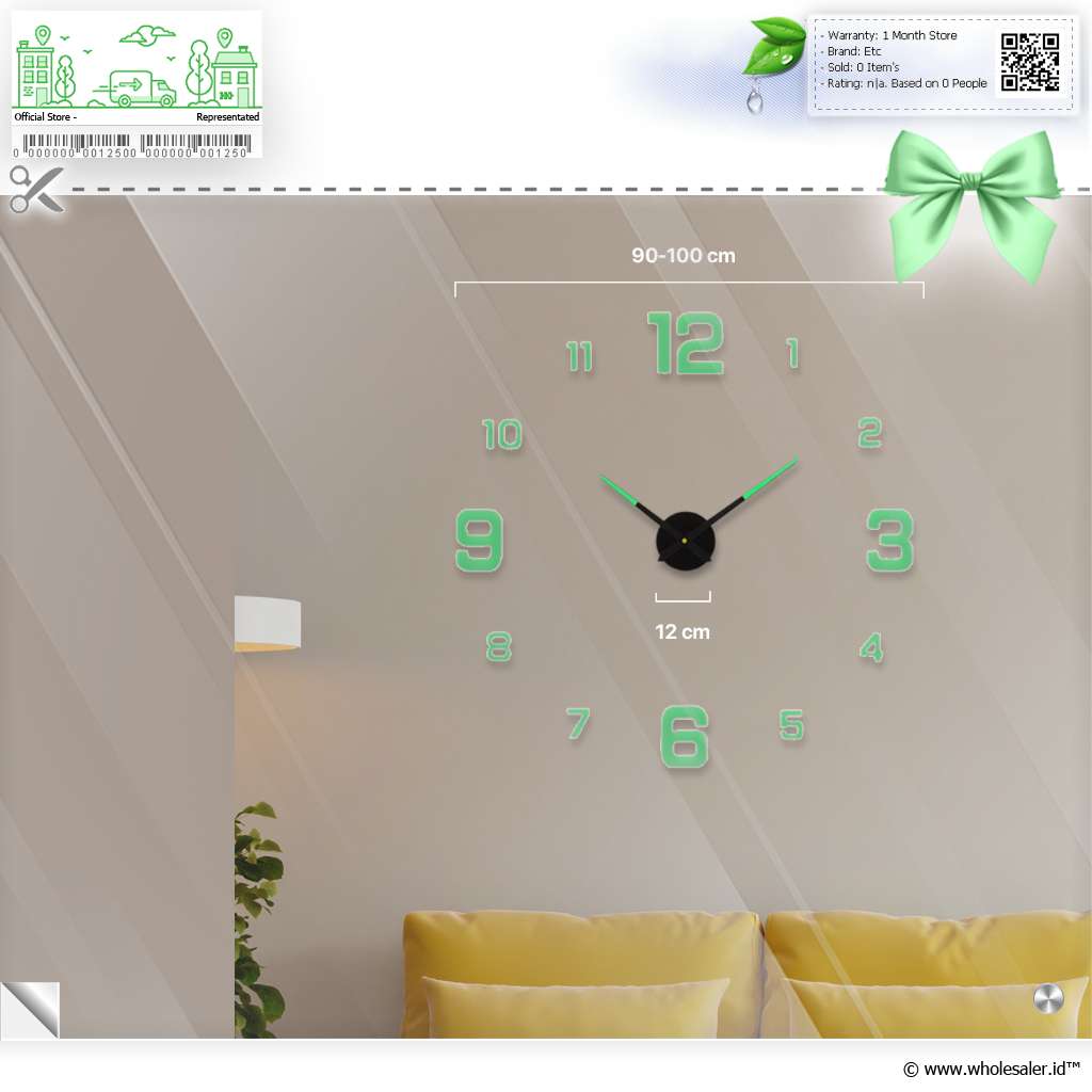 | Dimensi | : | Diameter 90-100 cm Jarum Penunjuk Menit Sekitar 39 cm Jarum Penunjuk Jam Sekitar 31 cm Diameter Mesin Sekitar 12 cm Tebal Busa Eva 8 mm |