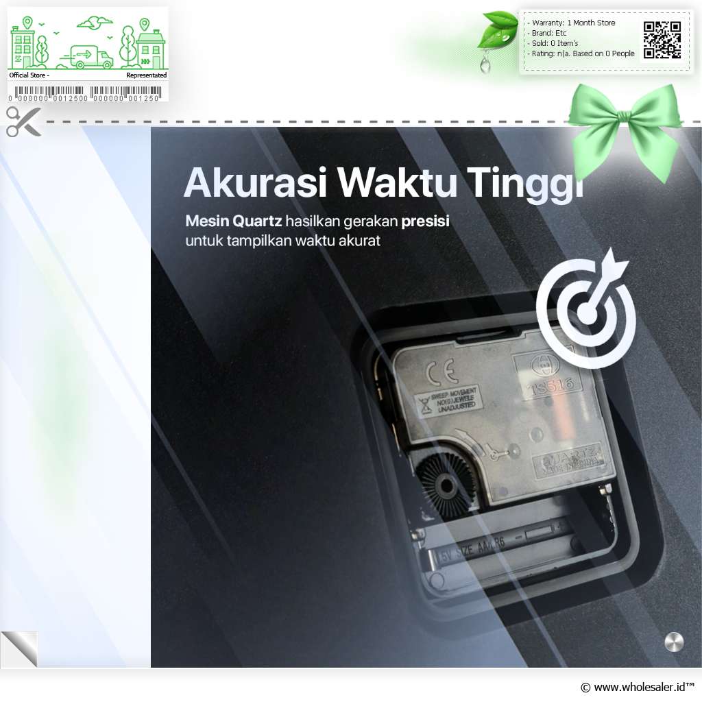 | Mesin Movement Terbaik Jam dinding elegan menggunakan mesin QUARTZ yang akurat dan awet. Dipadukan dengan teknologi putaran terbaru, jam dinding ini akan memberikan informasi waktu yang tepat dan presisi. |