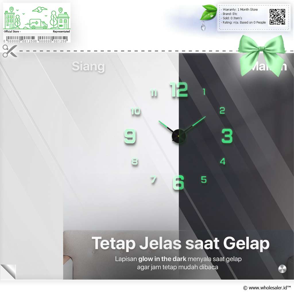| Elegan dan Tahan Lama Lapisan pelindung khusus membuat jam dinding DIY ini tidak mudah rusak dan tahan lama, meski terkena uap panas ataupun cipratan air saat rumah bocor |