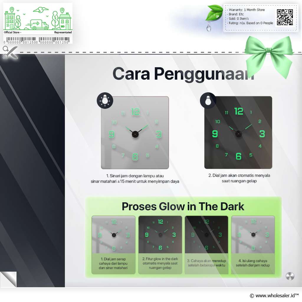 | Tetap Jelas saat Gelap Angka dan jarum jam dinding diberi lapisan glow in teh dark yang dapat menyala saat gelap. Kini Anda tetap bisa membaca waktu dengan mudah dan jelas di malam hari sekalipun. |