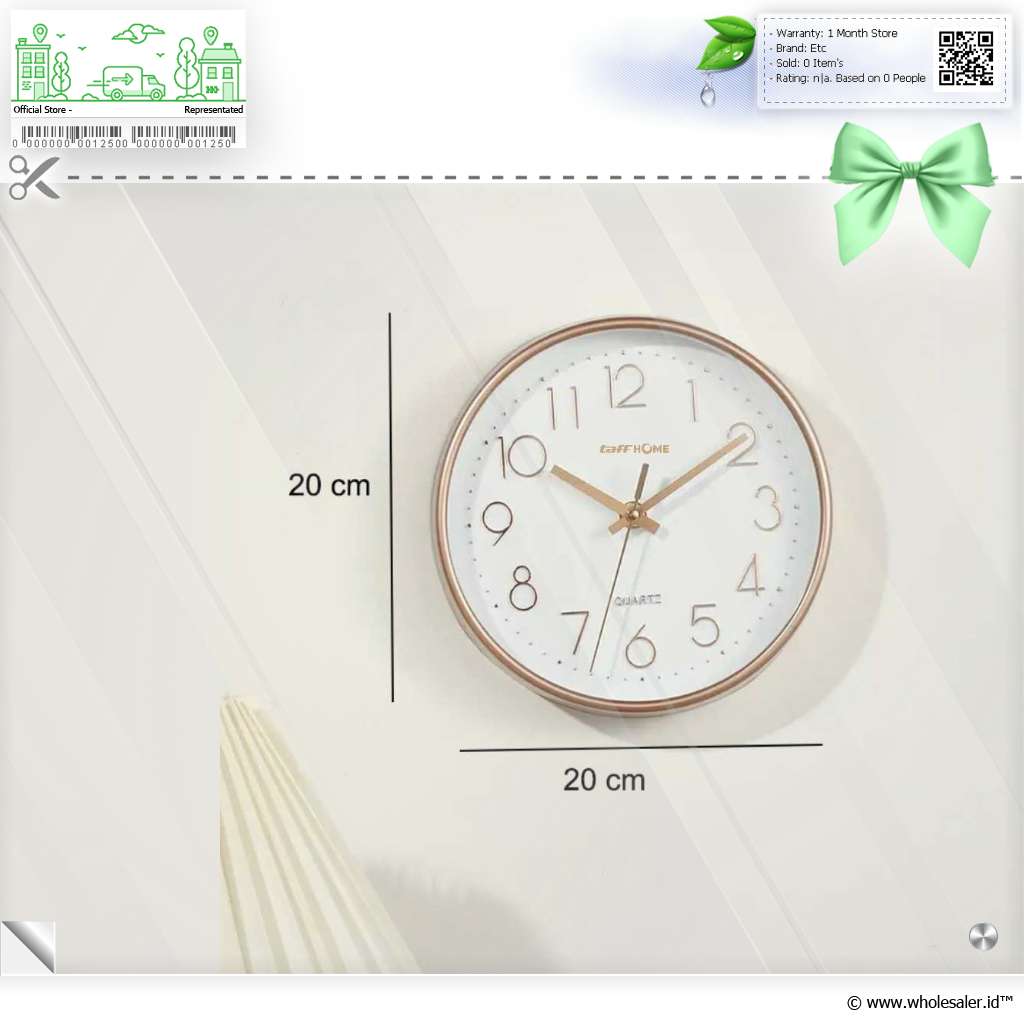 - 1 x TaffHOME Jam Dinding Quartz Nordic Minimalist Silent Movement 20cm - DG-20