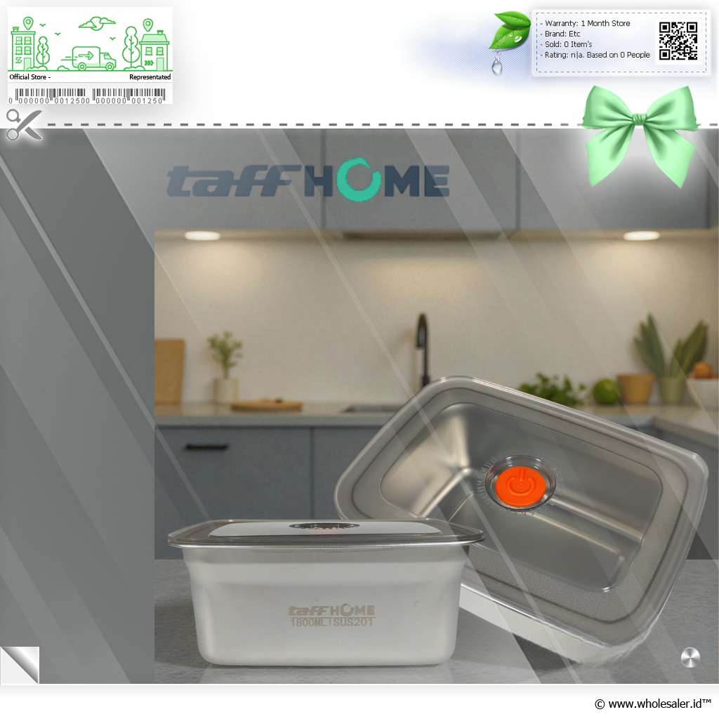 Kotak makan stainless TaffHOME tahan gores dan korosi, mudah dibersihkan, anti tumpah berkat segel silikon kedap udara. Tersedia kapasitas 1300 ml/1.3 L dan 2300 ml/2.3 L untuk porsi harian hingga ekstra besar.