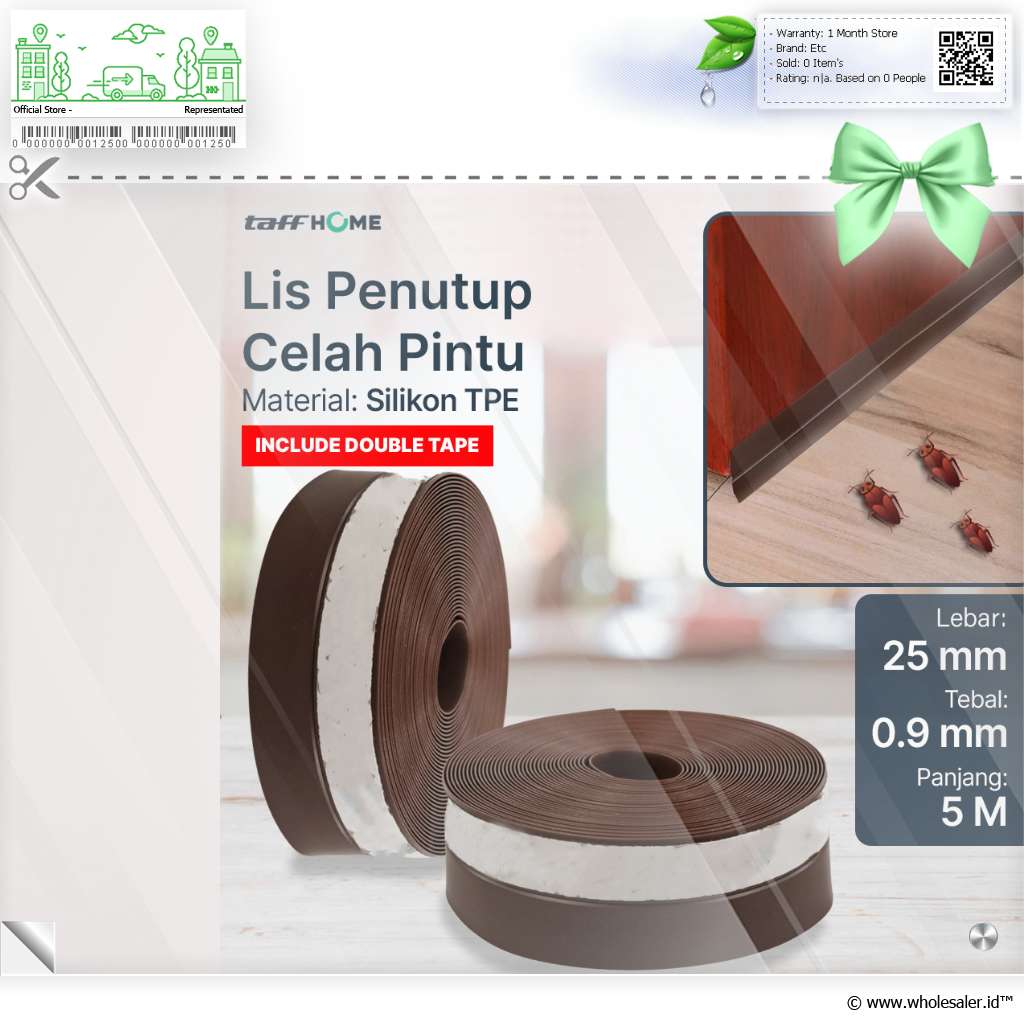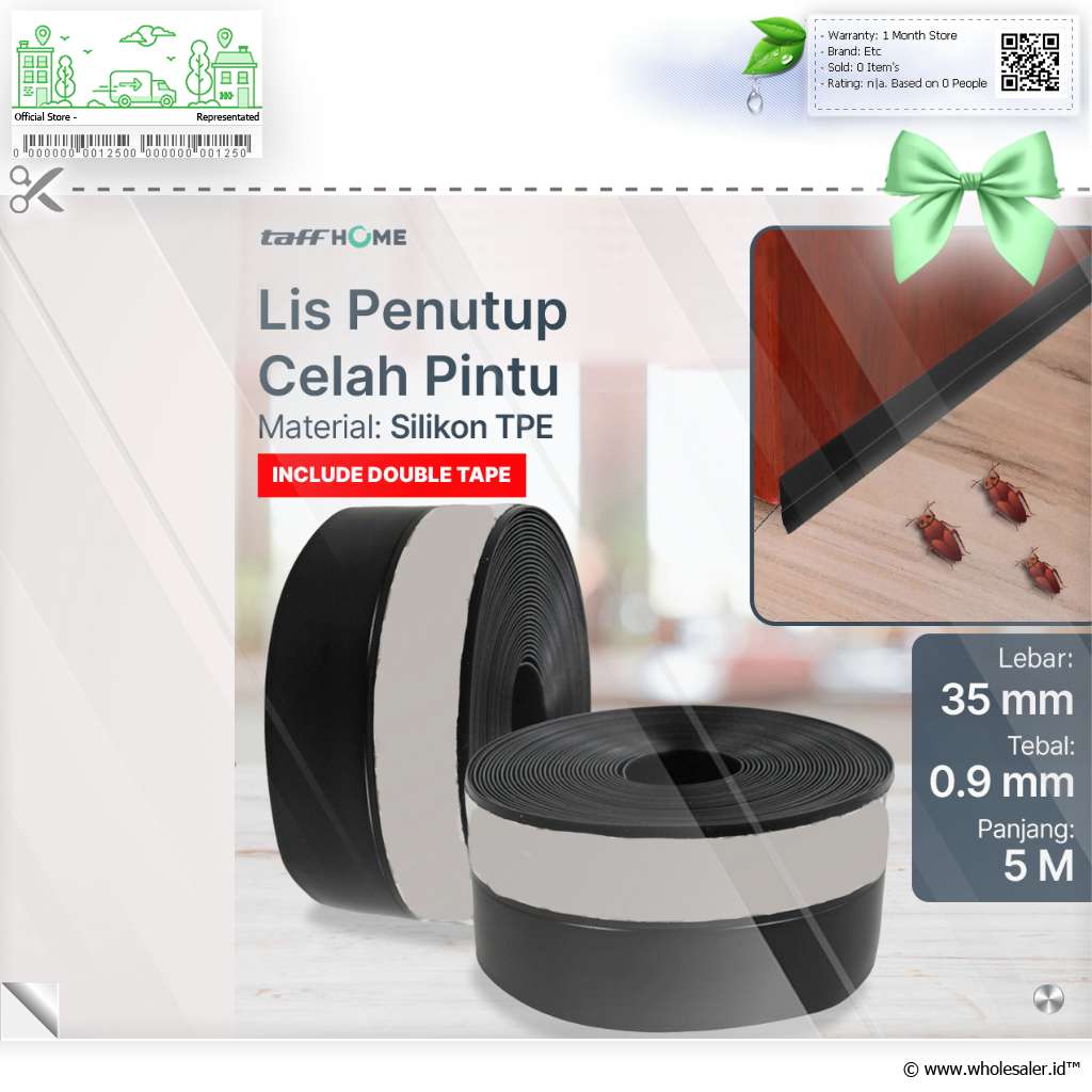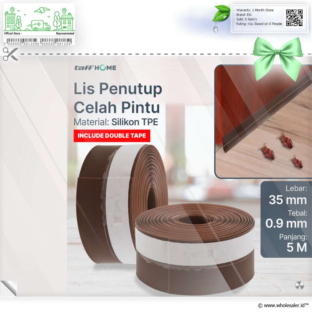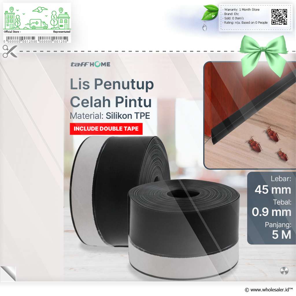 Penghalang Serangga dan Debu Lis penutup pintu ini efektif untuk menghalangi serangga seperti kecoa, kumbang, kaki seribu, dan serangga lainnya masuk ke dalam ruangan. Selain itu, Anda juga bisa menggunakan produk TaffHOME ini untuk mencegah debu dan kotoran mengotori lantai ruangan. Cocok untuk Anda yang ingin menjaga kebersihan ruangan. |