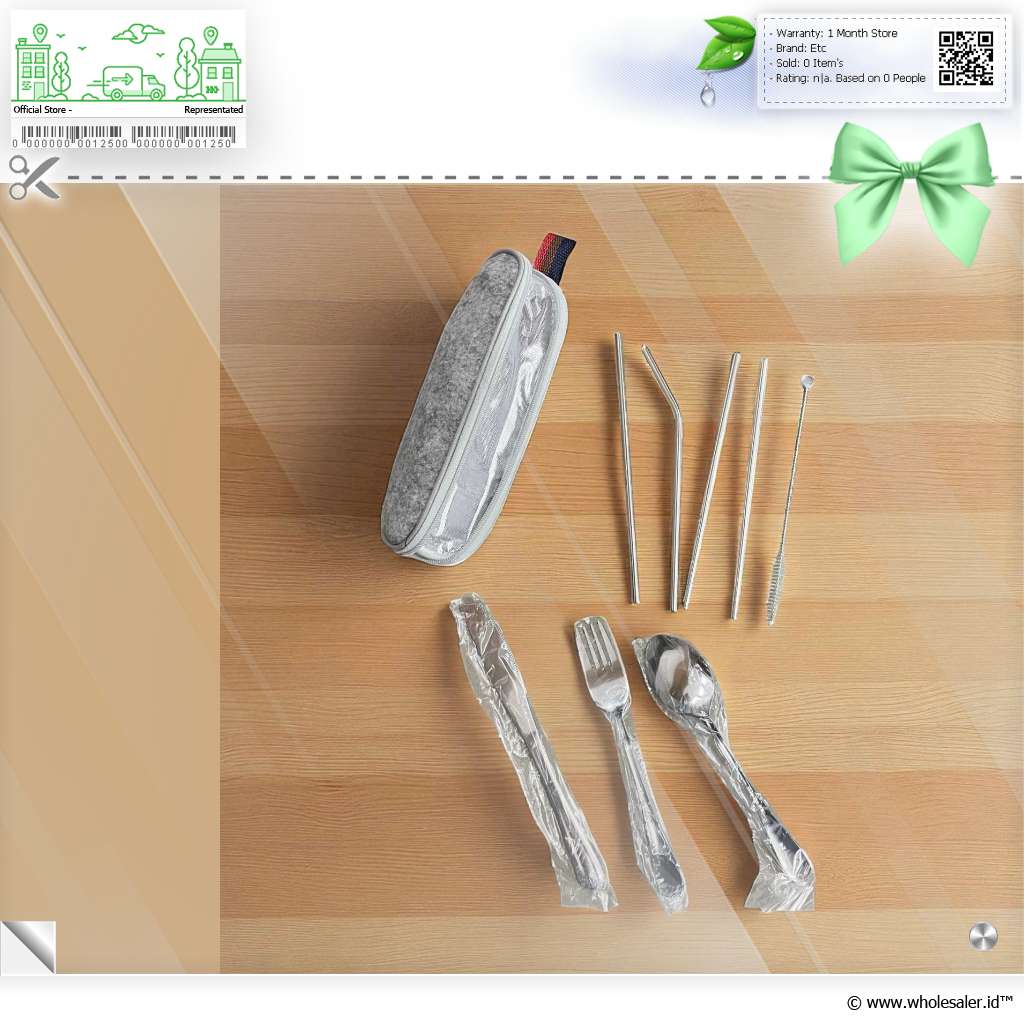 Set perlengkapan alat makan seperti sendok, garpu, pisau, sumpit, dan sedotan yang cocok untuk dibawa pada saat bepergian seperti pada waktu piknik, berkemah, atau bepergian ke mana pun. Desainnya yang keren ini tampak seperti peralatan makan bernuansa elegan.