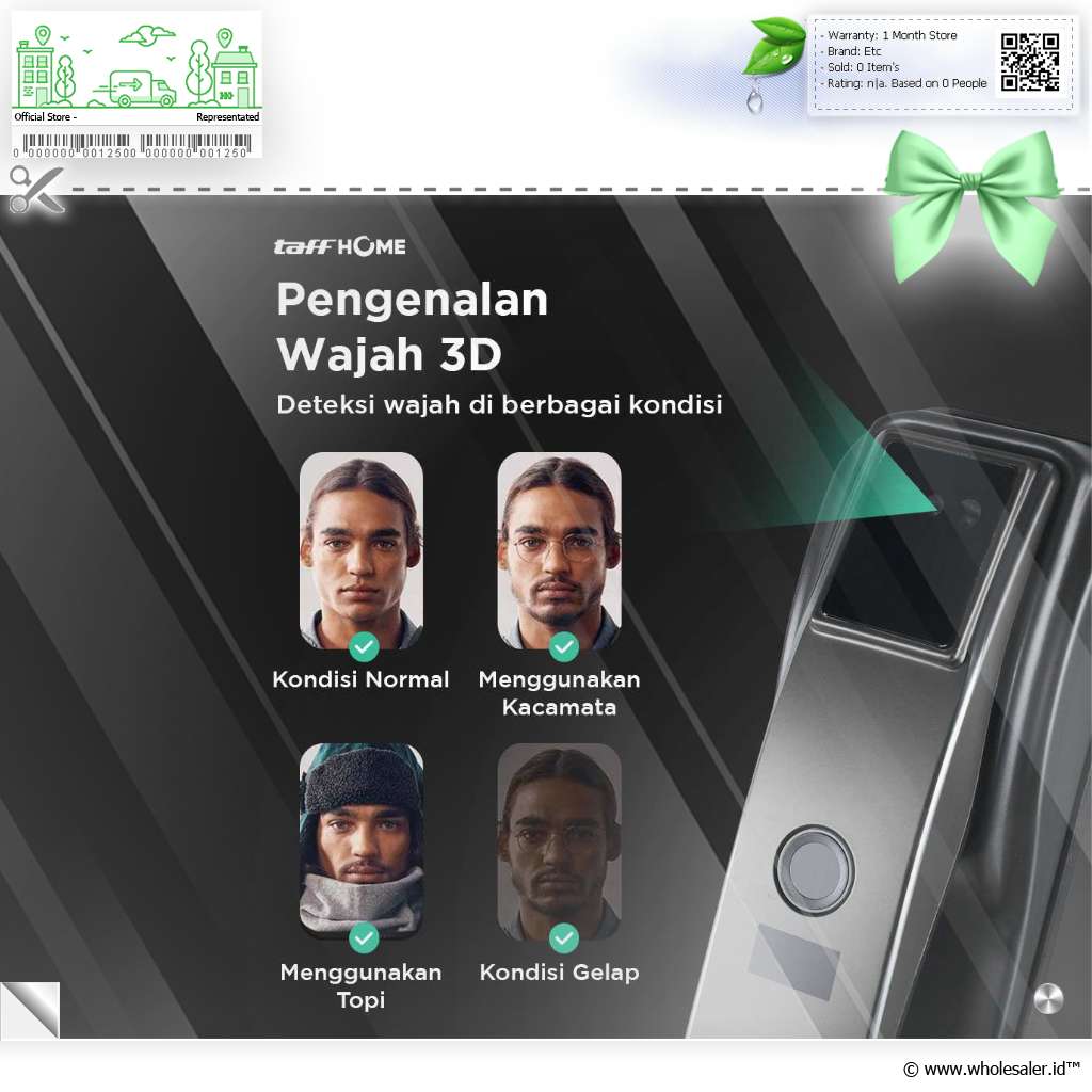 Informasi Produk TaffHOME Smart Door Lock Fingerprint 3D Face Recognition Card Eques - A1