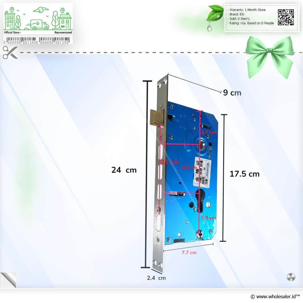 Dimensi | : | Unit Indoor 7.9 x 38 cm Unit Outdoor 7.9 x 38 cm Mortise 2.4 x 24 cm Bracket Besi 3 x 0.6 x 26 cm Bracket Plastik 2.3 x 2 x 23 cm Rekomendasi Tebal Pintu 5-13 cm |