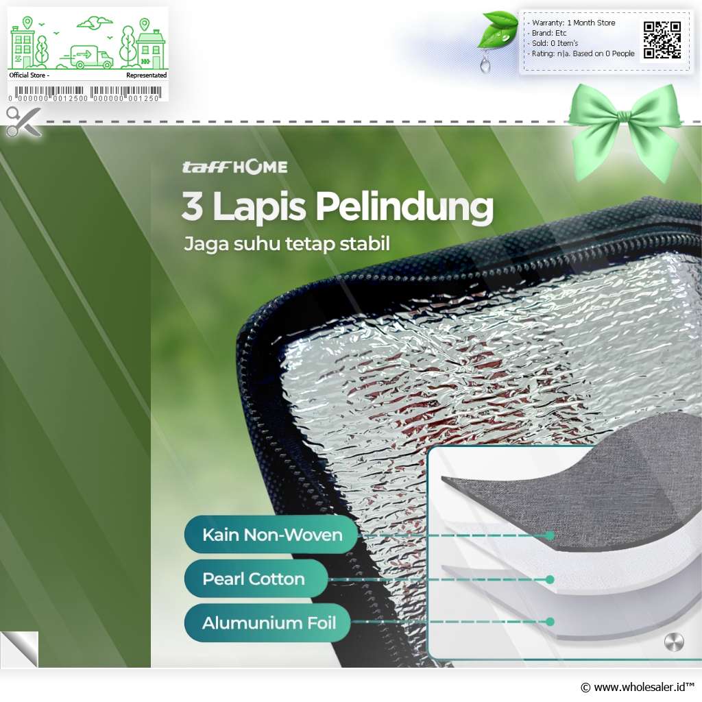 Jaga kondisi makanan saat dibawa bepergian menggunakan cooler bag dari TaffHOME. Dilengkapi lapisan aluminium foil, tas ini dapat menjaga suhu makanan tetap stabil selama perjalanan. Dapat digunakan untuk makanan panas dan dingin, produk TaffHOME ini jadi teman traveling yang tak boleh ketinggalan.