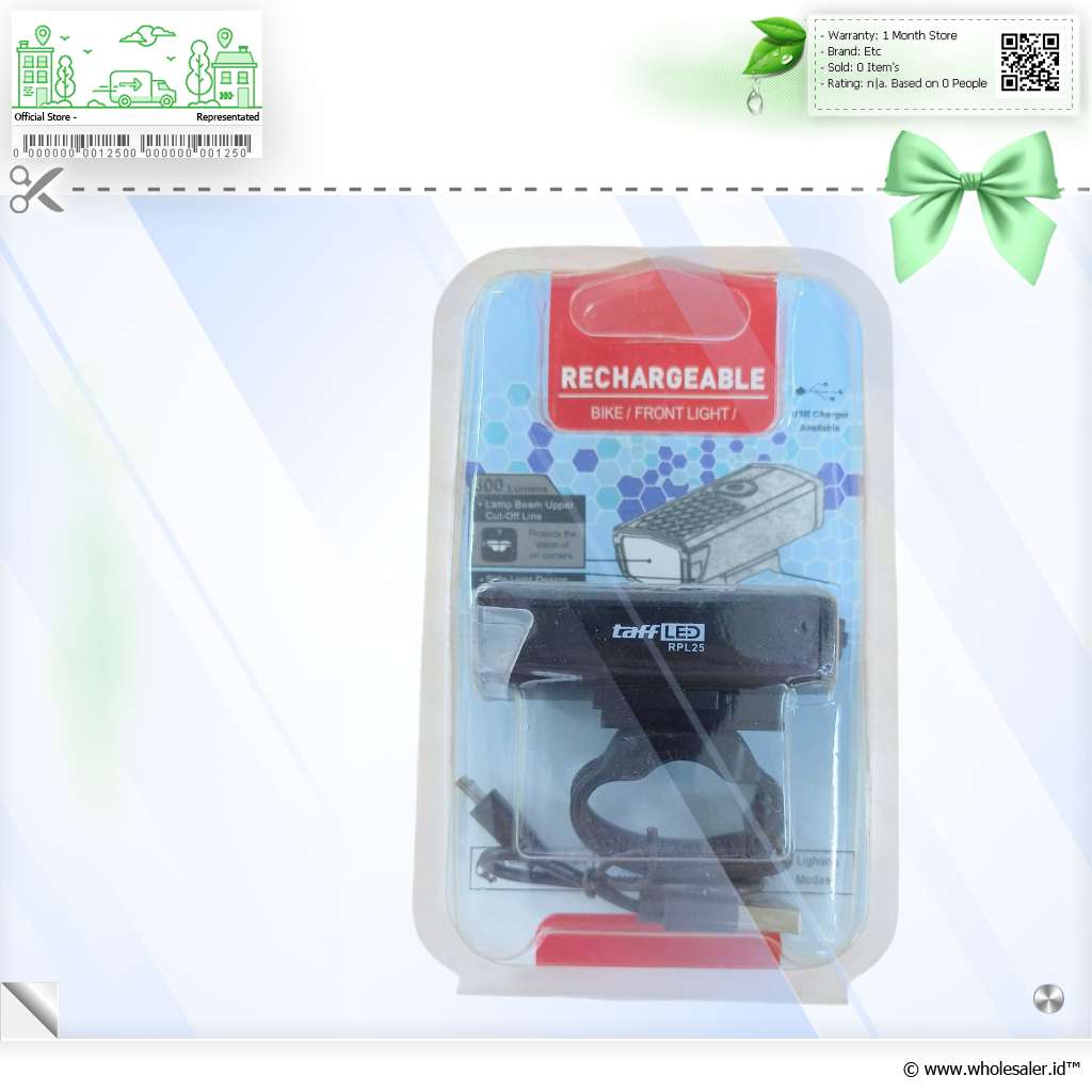 - 1 x TaffLED Lampu Depan Sepeda LED USB Rechargeable 800mAh 300 Lumens - RPL25