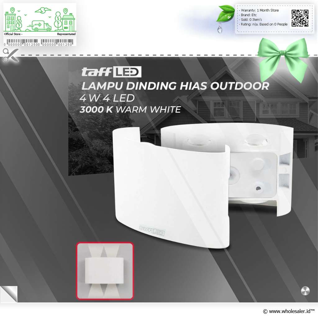 Jangan biarkan dinding rumah Anda terasa sepi dan membosankan, segera pasang lampu dinding hias outdoor dari TaffLED yang memiliki desain modern. Dirancang dengan 4 LED yang mampu menyorotkan cahaya dari dua sisi, lampu ini merupakan solusi penerangan sekaligus dekorasi yang indah untuk dinding kamar, area pintu masuk, atau teras.