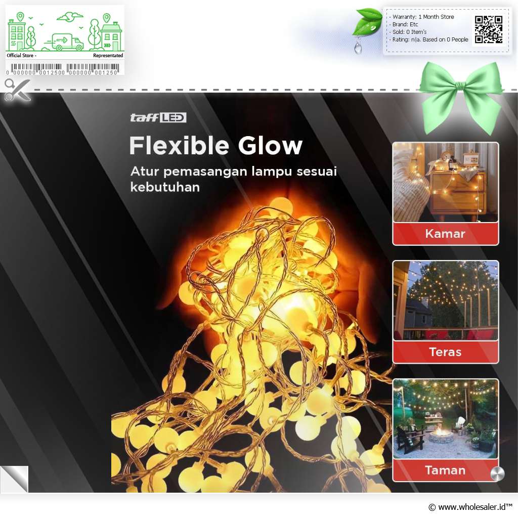 | Flexible Glow Menggunakan kabel yang fleksibel, pasang lampu hias string light untuk melengkapi penerangan di berbagai tempat. Mulai dari kamar hingga taman, buat seluruh area rumah jadi lebih terang. |