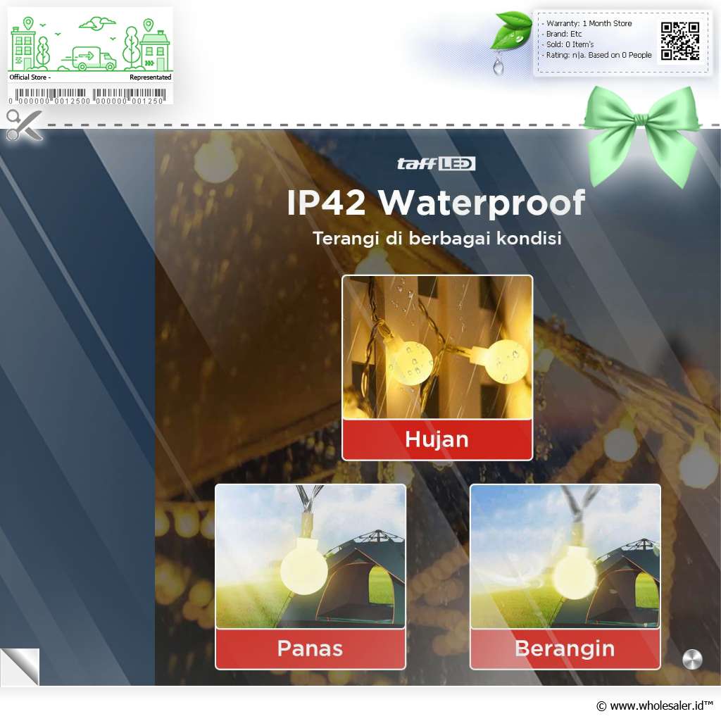 | IP42 Waterproof IP42 membuat lampu hias waterproof dan tahan debu. Gunakan untuk menerangi rumah di berbagai cuaca, mulai dari hujan hingga panas tanpa masalah. |