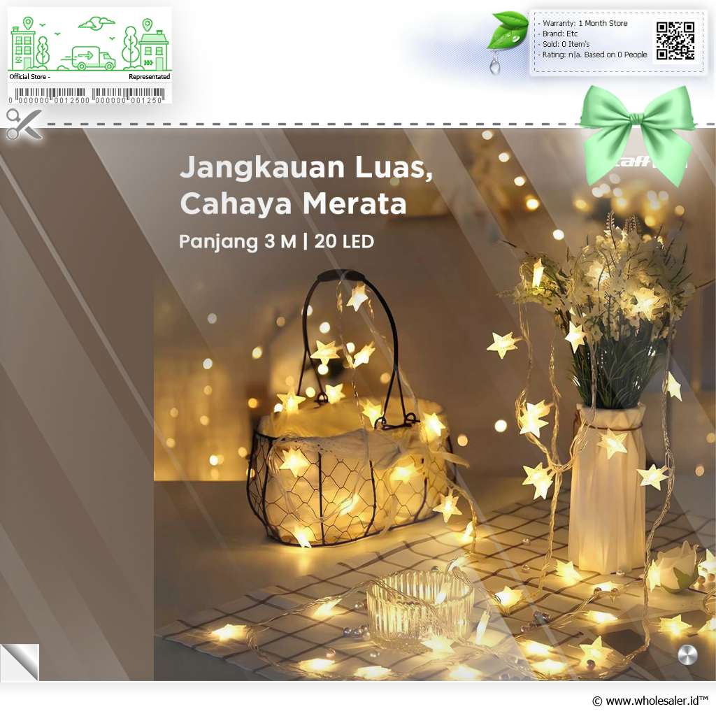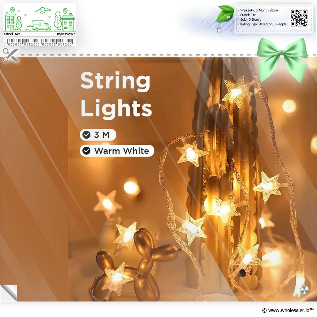Berikan sentuhan hangat pada ruangan dan area outdoor dengan memasang lampu hias string light. Model bintang mini memberikan kesan manis pada ruangan. Cahaya lembut yang dipancarkan jadi solusi tepat untuk melengkapi dekorasi pada ruangan. Ditenagai menggunakan baterai AA sehingga lebih fleksibel untuk digunakan di mana saja.