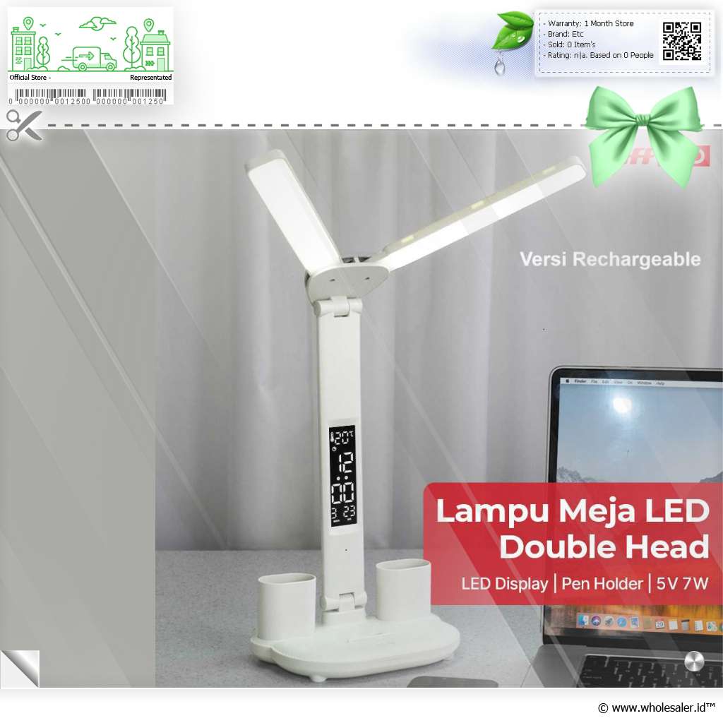 - 1 x TaffLED Lampu Meja Baca LED Display Double Head Rechargeable 3in1 7W - BST-7019
