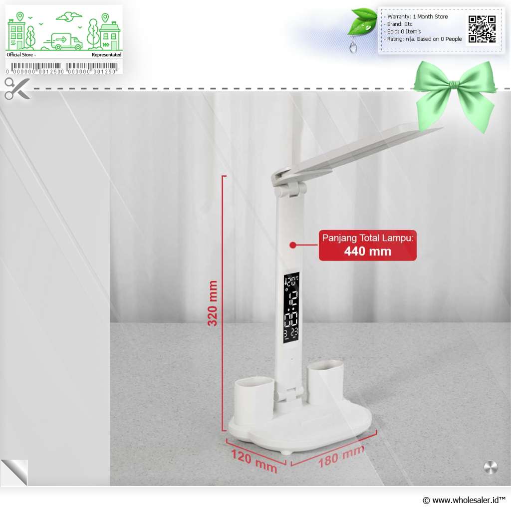 Dimensi | : | Base 180 x 120 mm Tinggi 320 mm Panjang Total Lampu 440 mm Wadah Alat Tulis 50 x 34 x 50 mm Panjang Kabel 1.2 M |