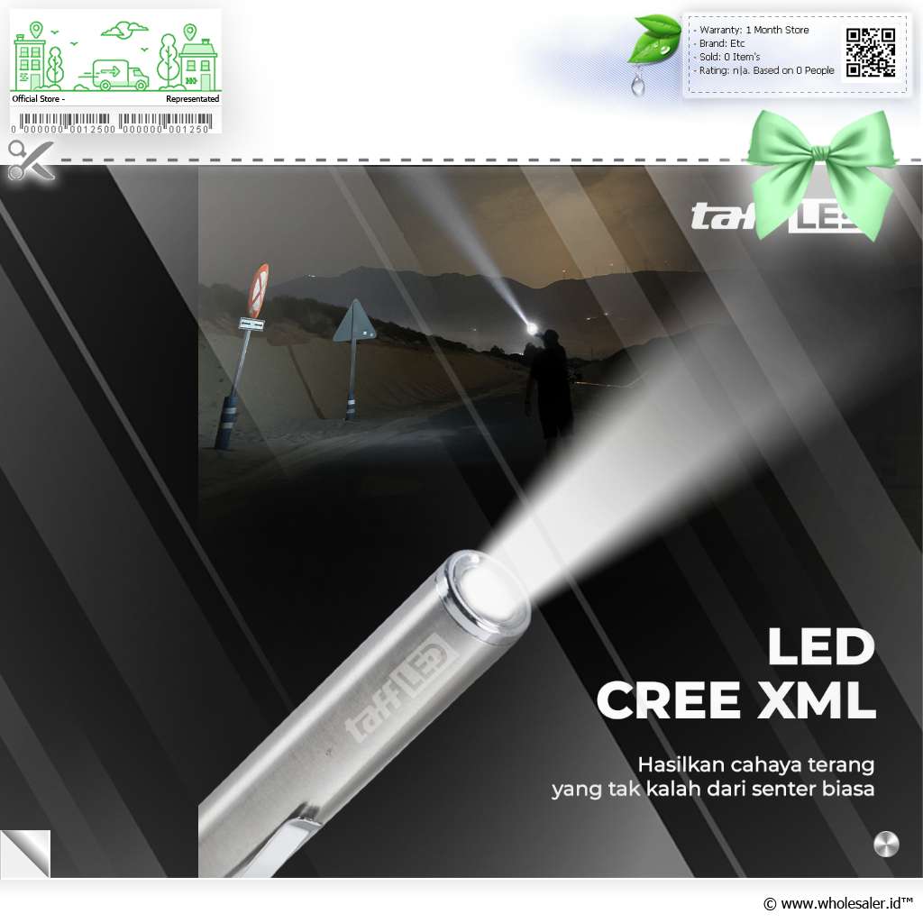 Butuh penerangan tambahan yang praktis dan bisa dibawa kemana sajaGunakan senter LED mini dari TaffLED. Hadir dengan ukuran 10.2 cm, senter mudah dibsawa dan bisa digunakan kapan saja. Chip LED CREE XML hasilkan cahaya terang yang tak kalah dari senter biasa.