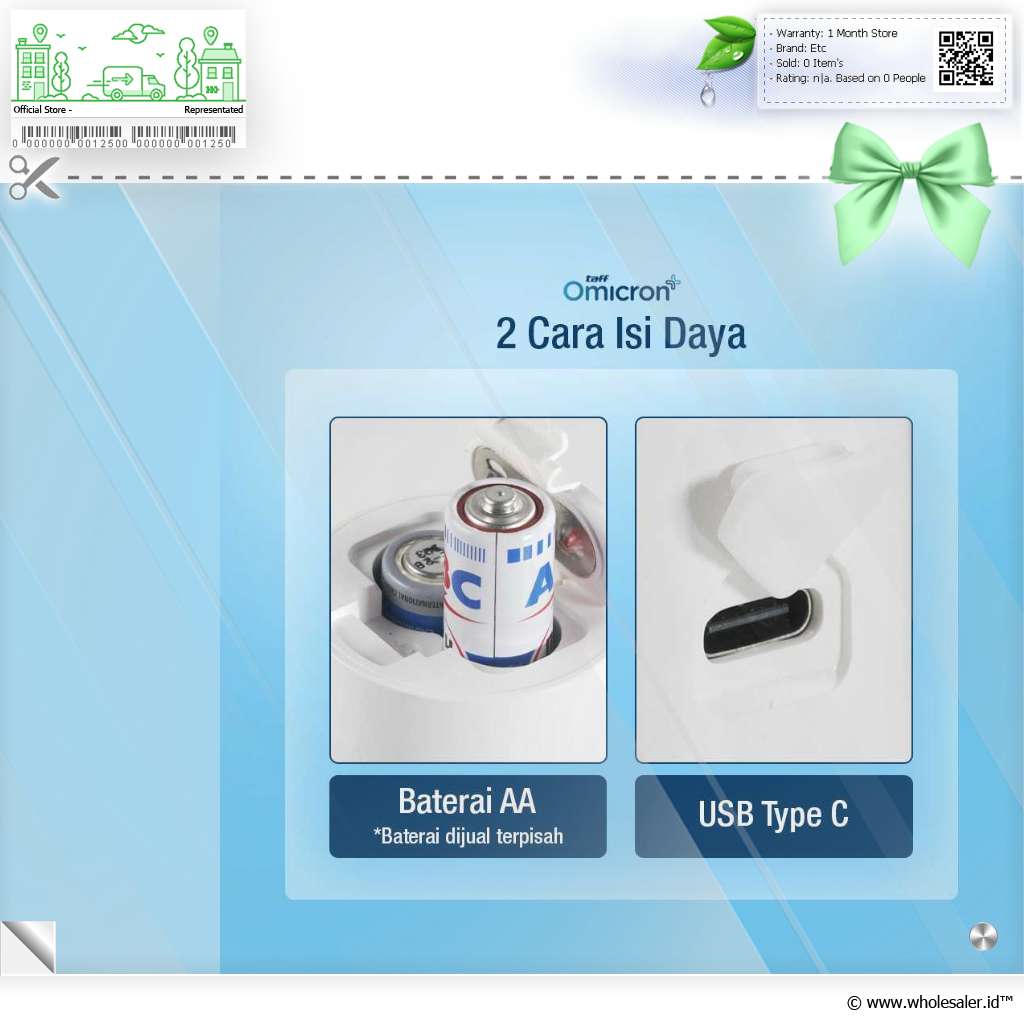2 Cara Isi Daya Tak perlu khawatir kehabisan daya saat menggunakan mesh nebulizer. Nyalakan produk dengan baterai AA atau gunakan kabel USB Type C jika produk kehabisan daya di saat darurat. |