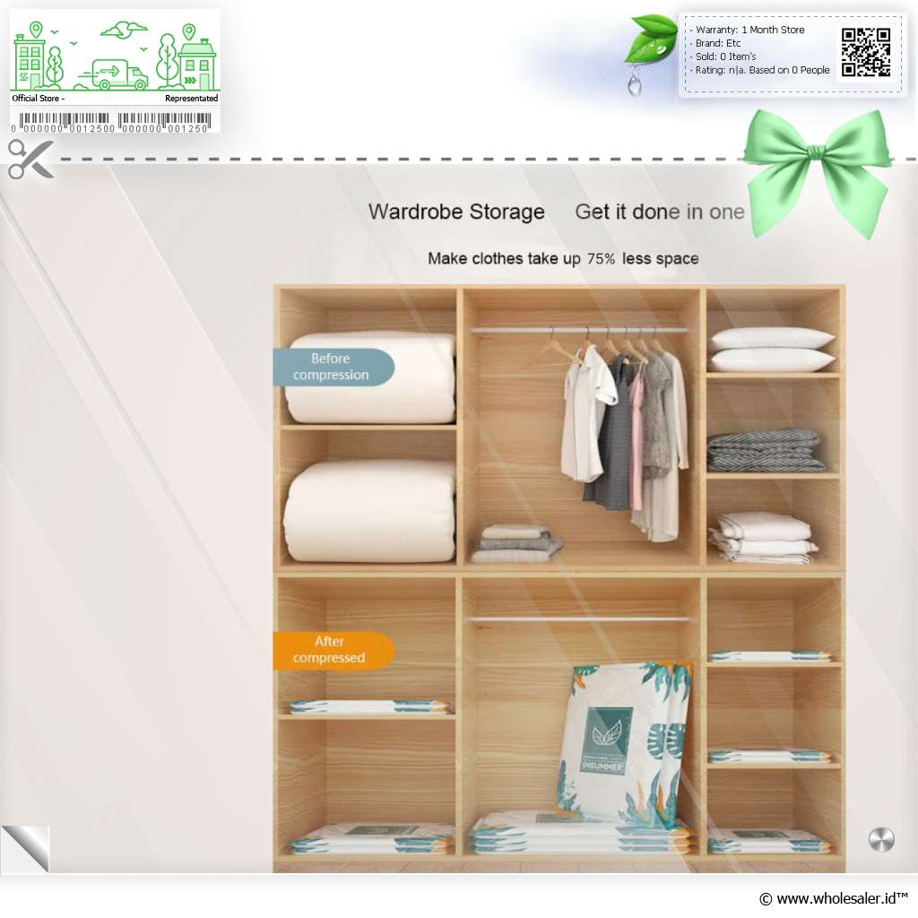 | Hemat Ruang, Lebih Rapi Simpan baju pada kantong plastik vakum dan hemat hingga 75% ruang penyimpanan. |