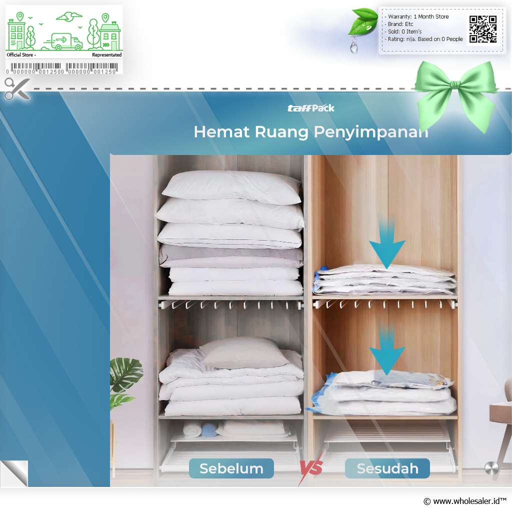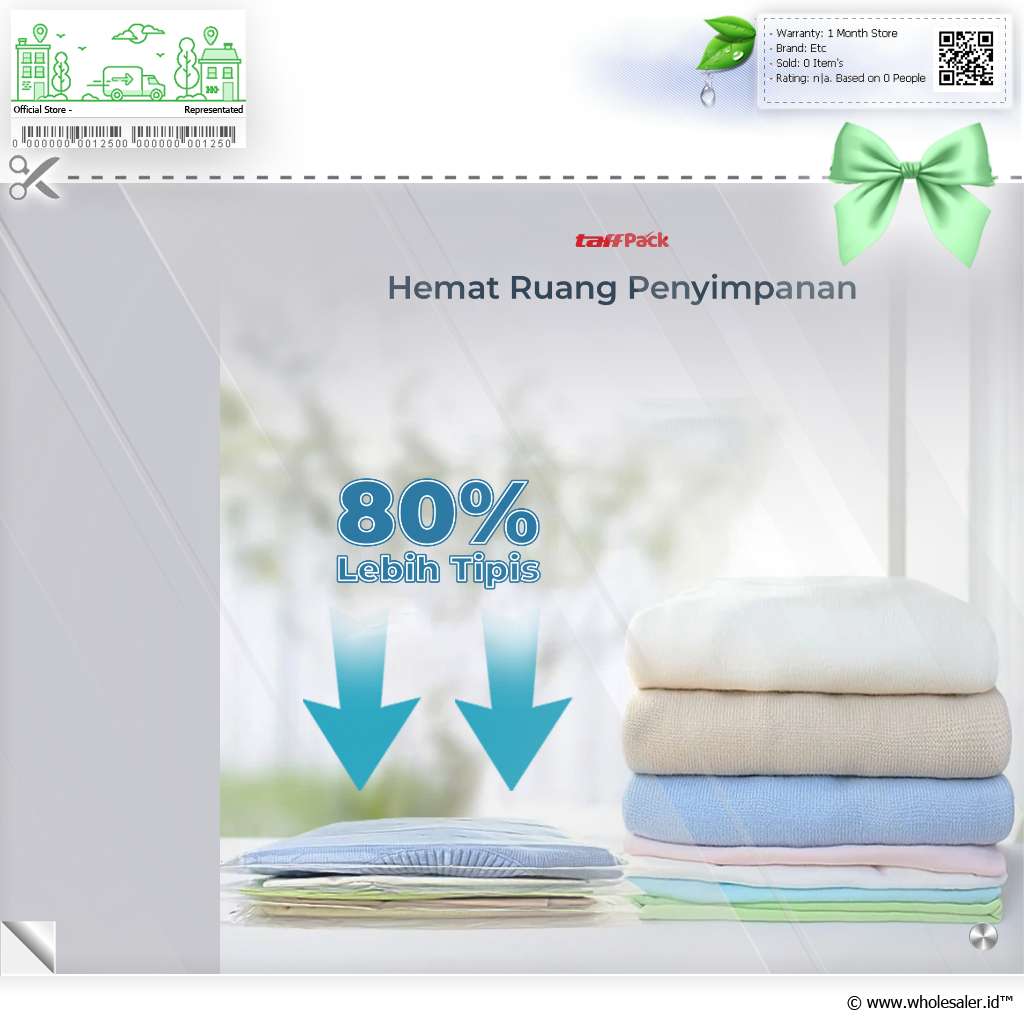 Ingin membawa banyak pakaian saat traveling, tapi tak muat di koperKantong plastik vakum TaffPACK solusinya. Dapat mengurangi volume udara pada pakaian, kini Anda bisa punya lebih banyak outfit selama traveling. Terbuat dari bahan plastik tebal yang kuat dan tidak mudah bocor.