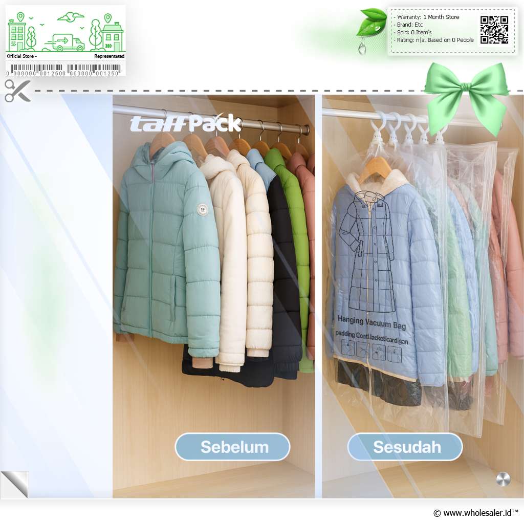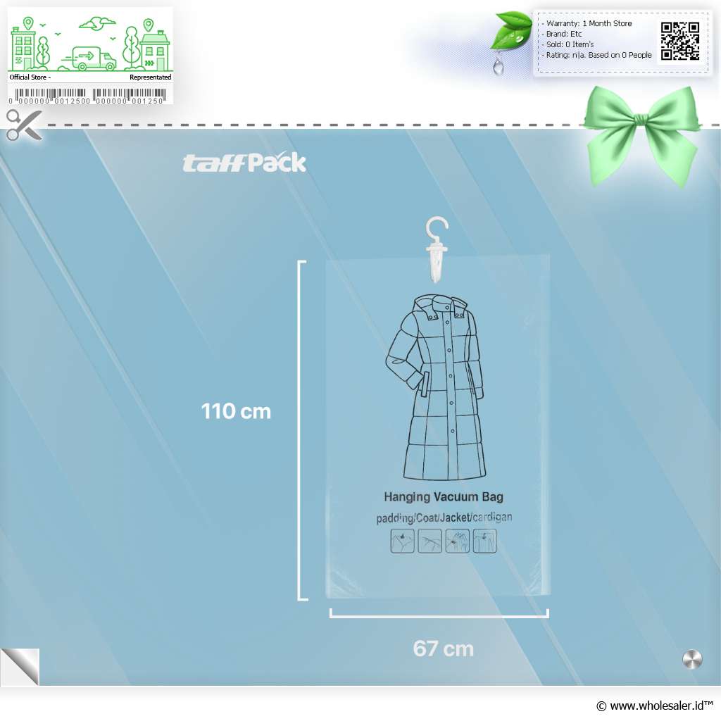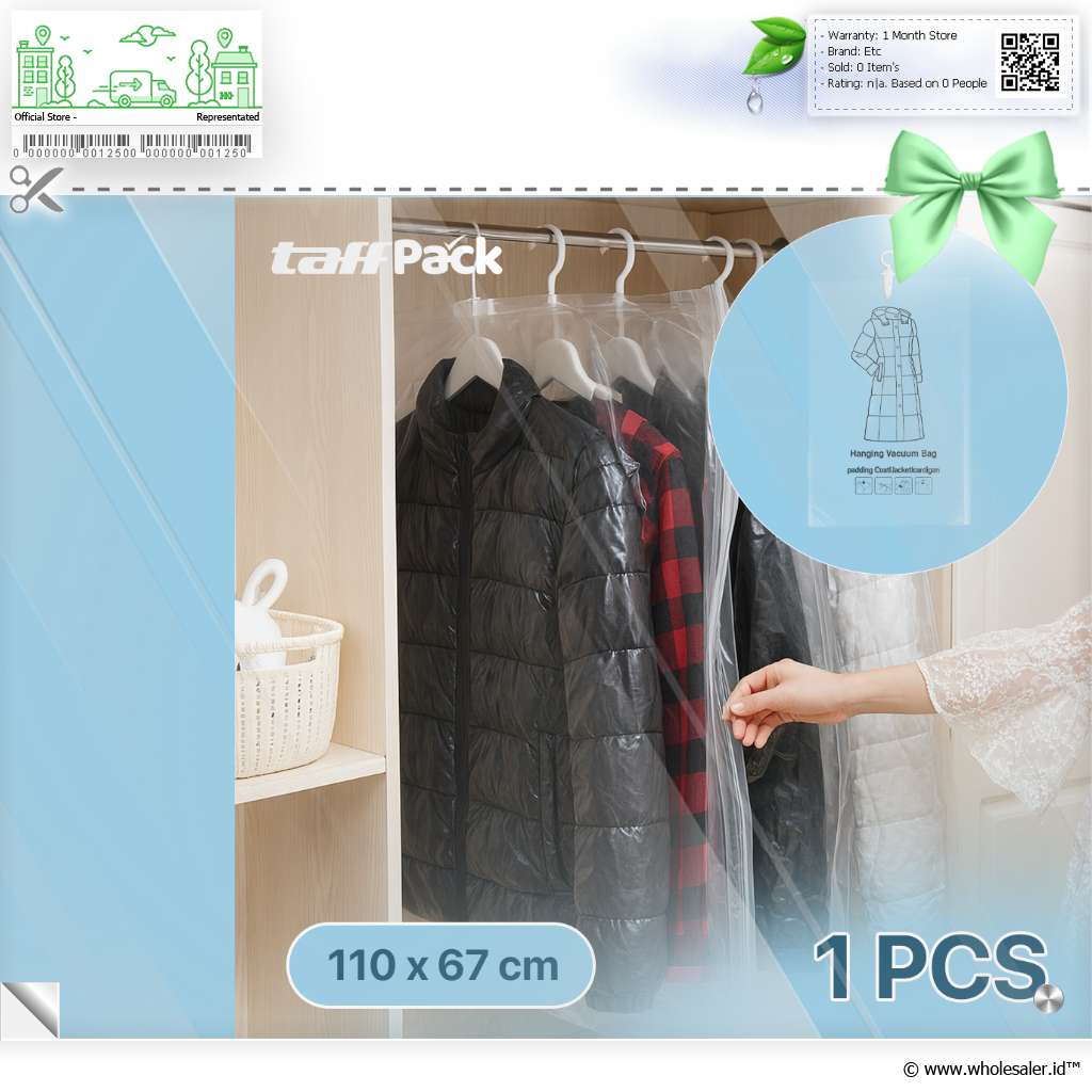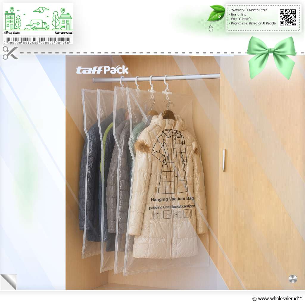 Simpan mantel, jaket, dan pakaian tebal lainnya kini tak lagi menguras ruang karena Anda bisa menggunakan kantong plastik vakum dari TaffPACK. Dibuat khusus untuk pakaian berukuran panjang, Anda tak perlu repot melipat pakaian sebelum divakum. Lengkap dengan hook untuk menyimpan banyak pakaiam sekaligus.
