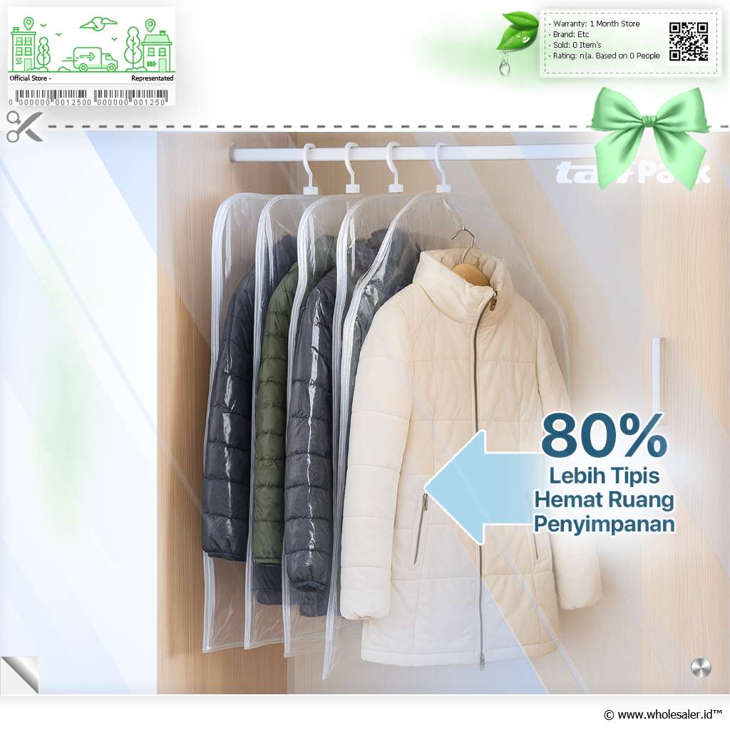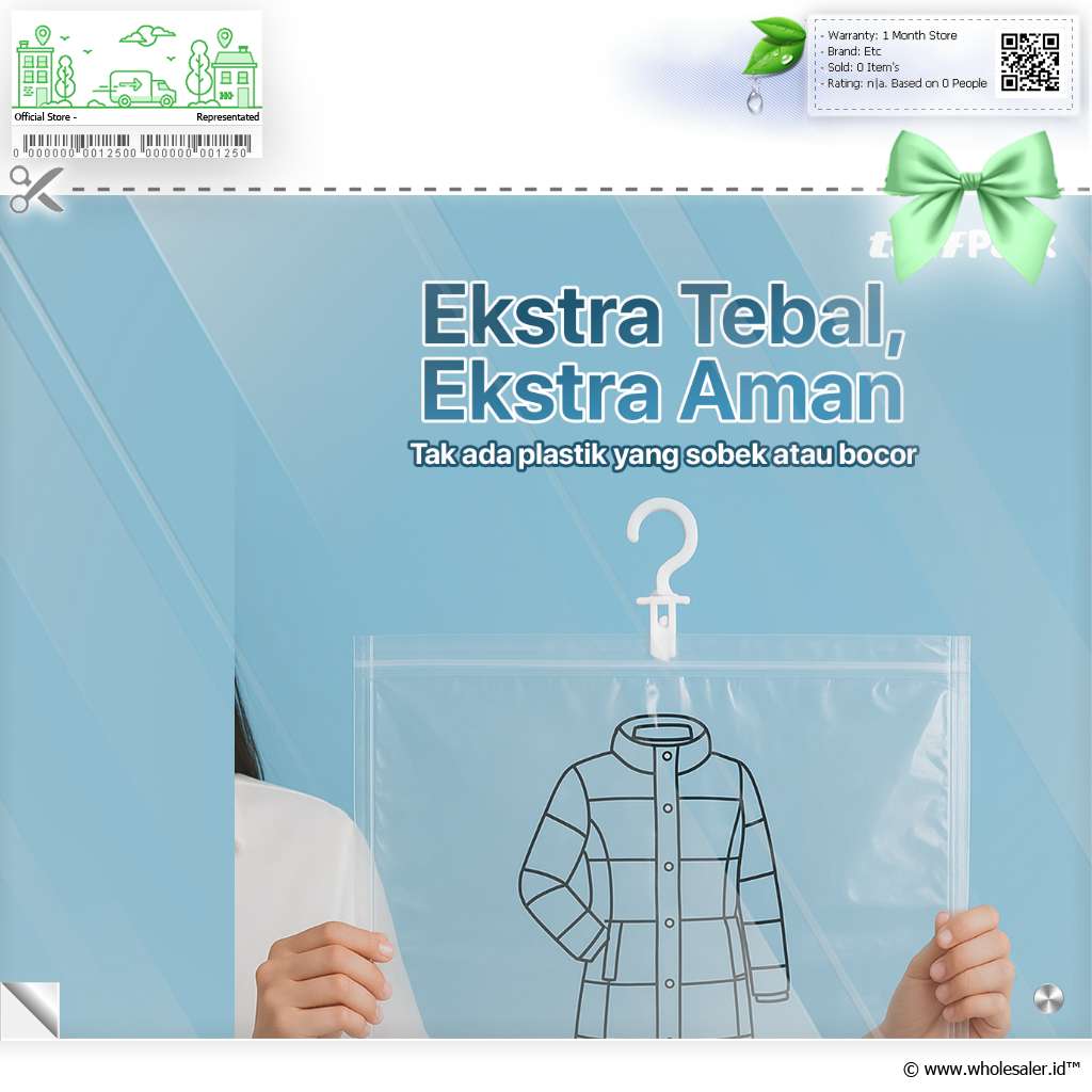 | Plastik Tebal Anti Sobek Tak ada tempat penyimpanan yang sobek atau bocor berkat bahan plastik tebal yang dapat memastikan baju yang disimpan kedap udara. |
