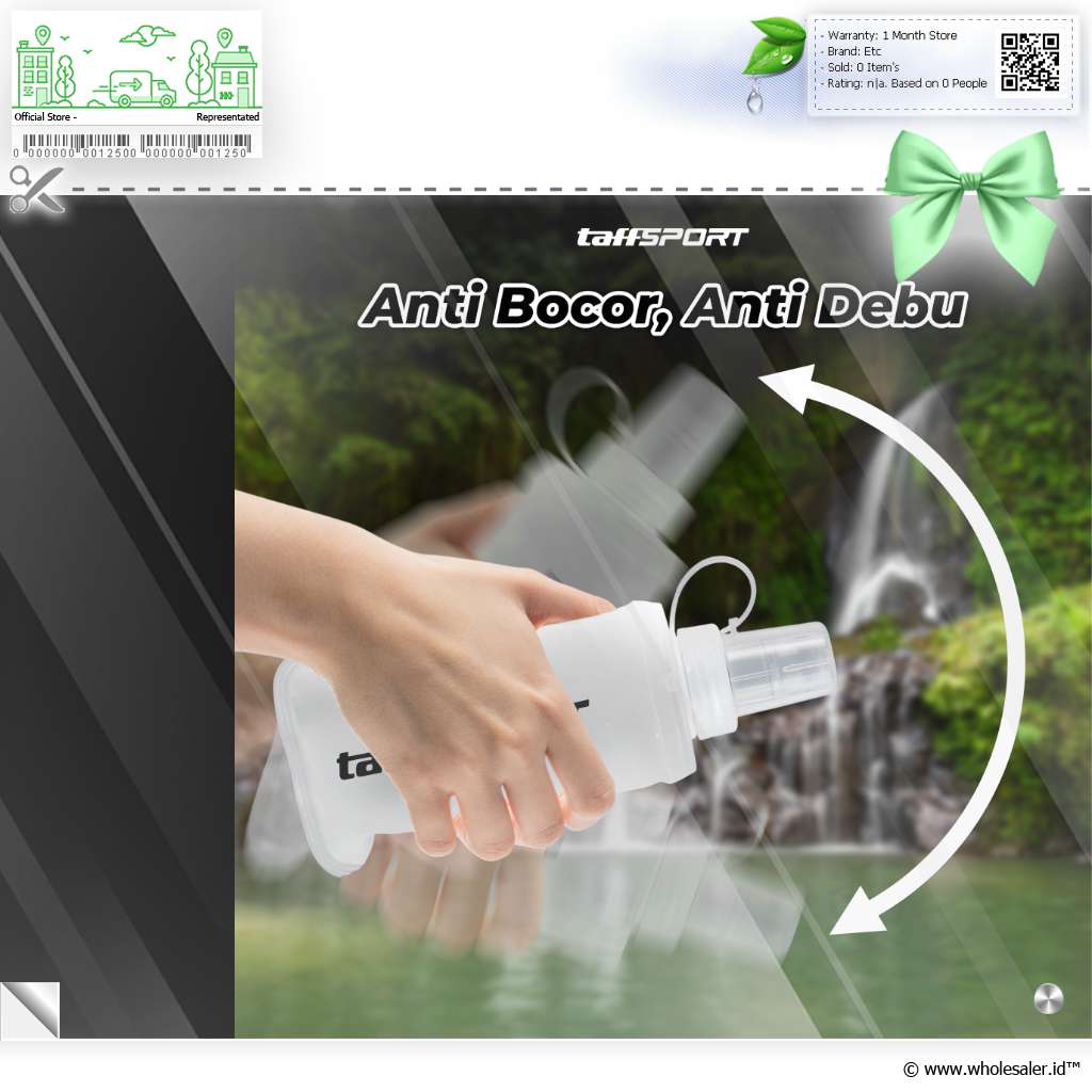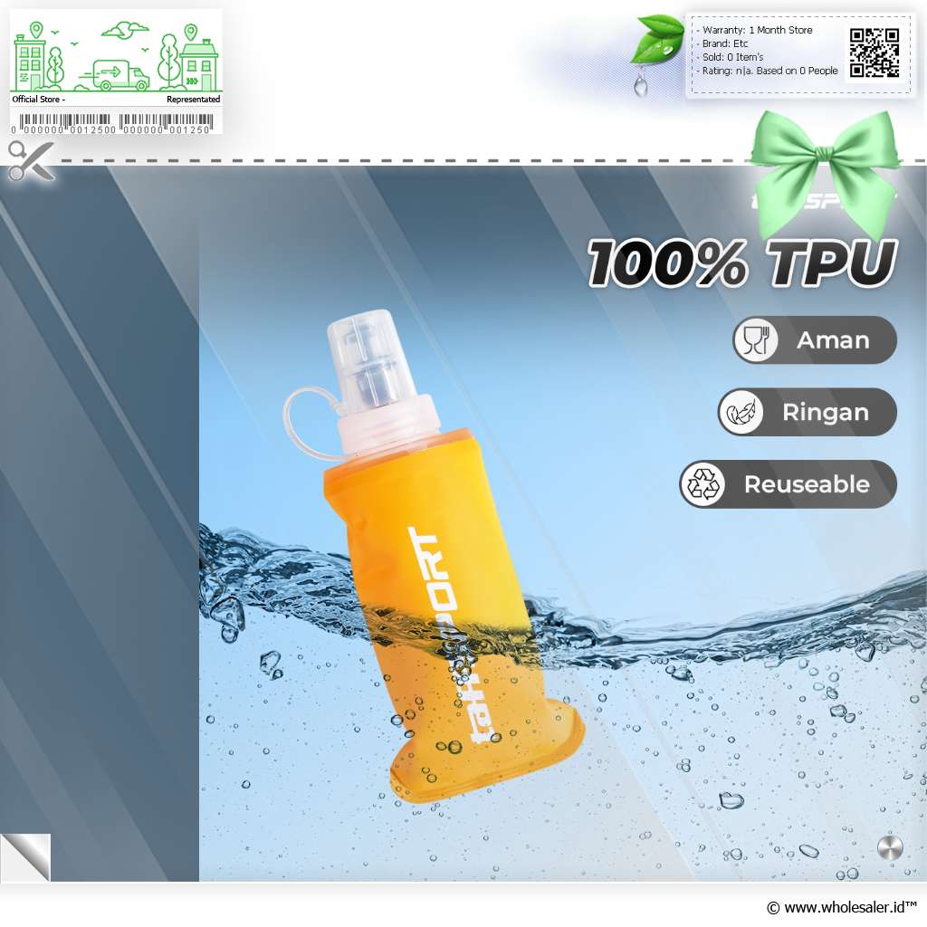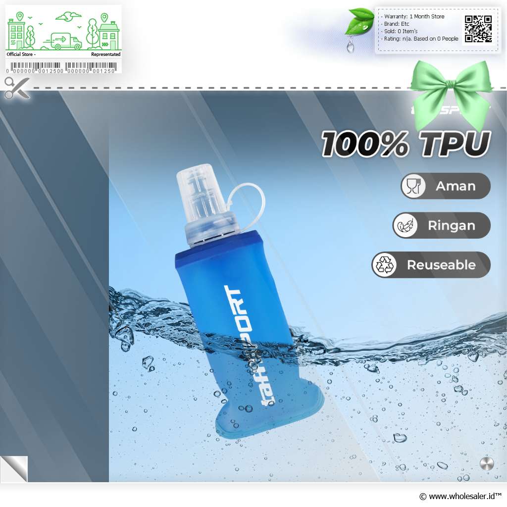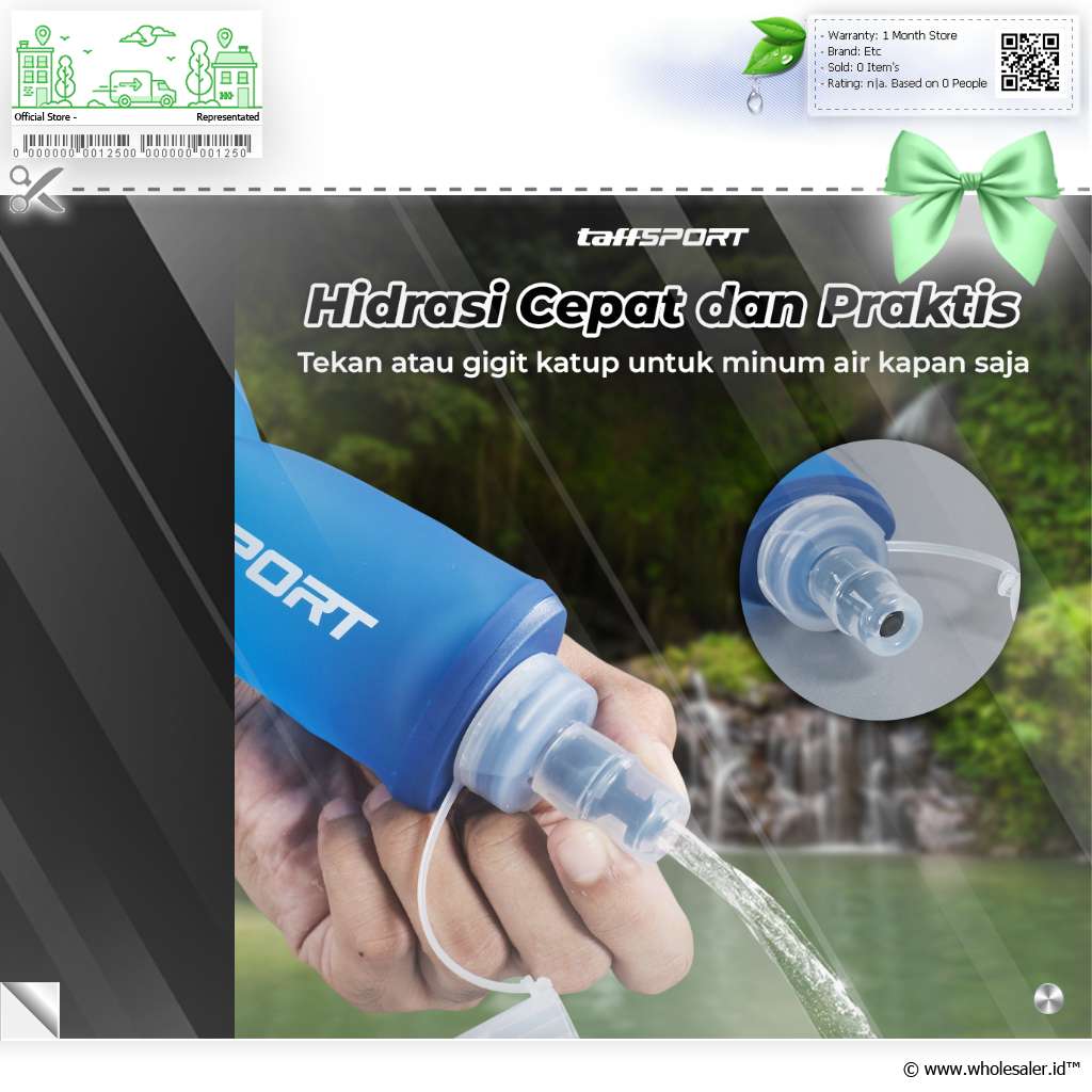 Membawa air minum saat olahraga hingga trekking kini makin mudah berkat botol minum lipat dari TaffSPORT. Terbuat dari TPU yang aman dan tebal, botol ini bisa dilipat saat tidak digunakan. Kapasitas 150 ml ideal untuk redakan haus saat beraktivitas luar ruangan.