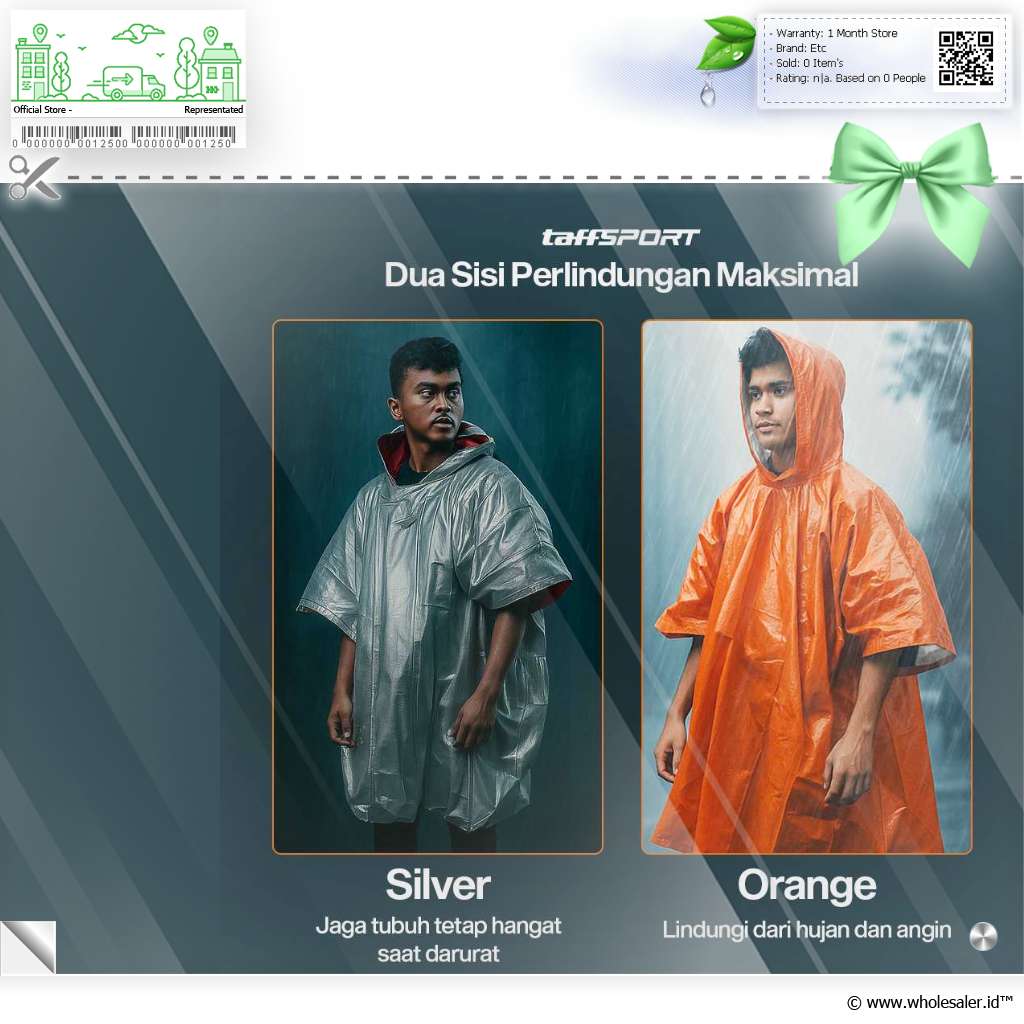 Dua Sisi Perlindungan Maksimal Dibekali 2 sisi, jas hujan sekali pakai ini memberikan perlindungan maksimal dari hujan dan angin. Gunakan bagian berwarna silver untuk jaga tubuh tetap hangat. |