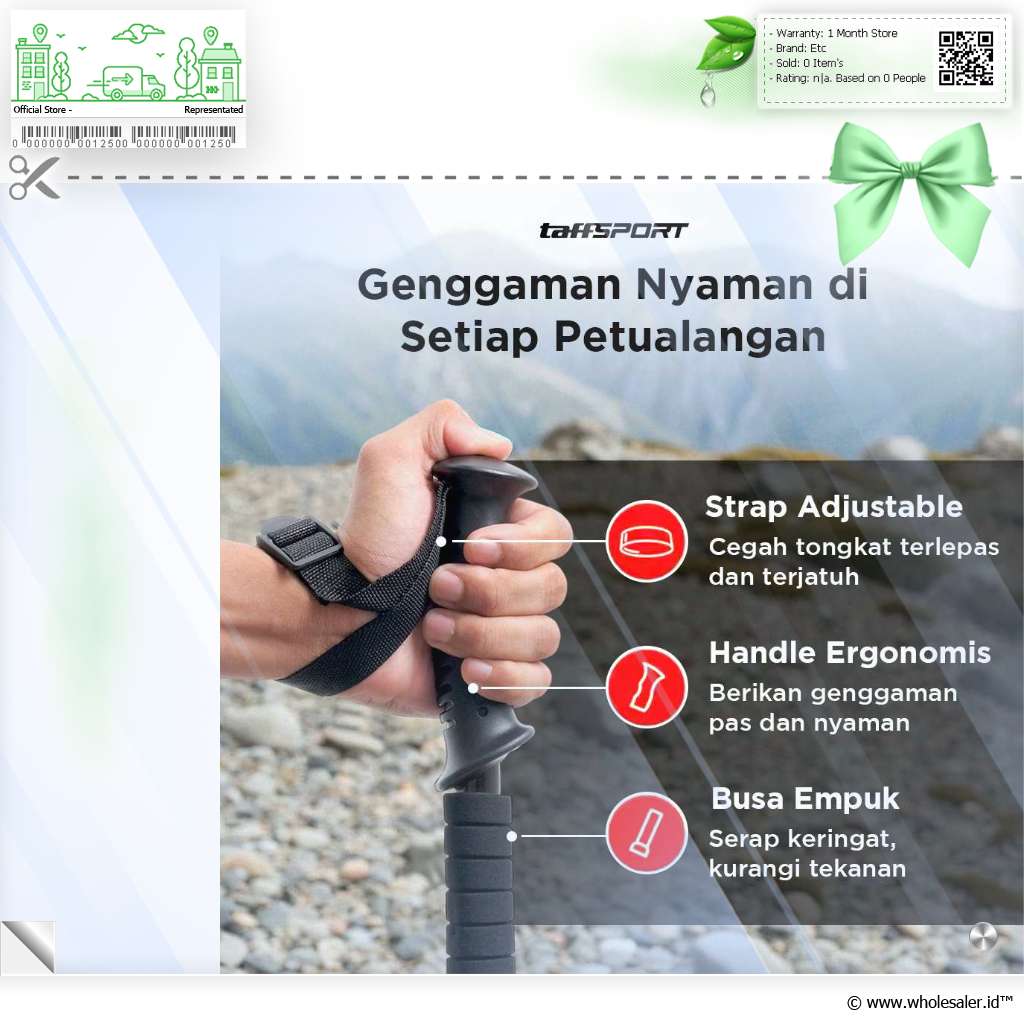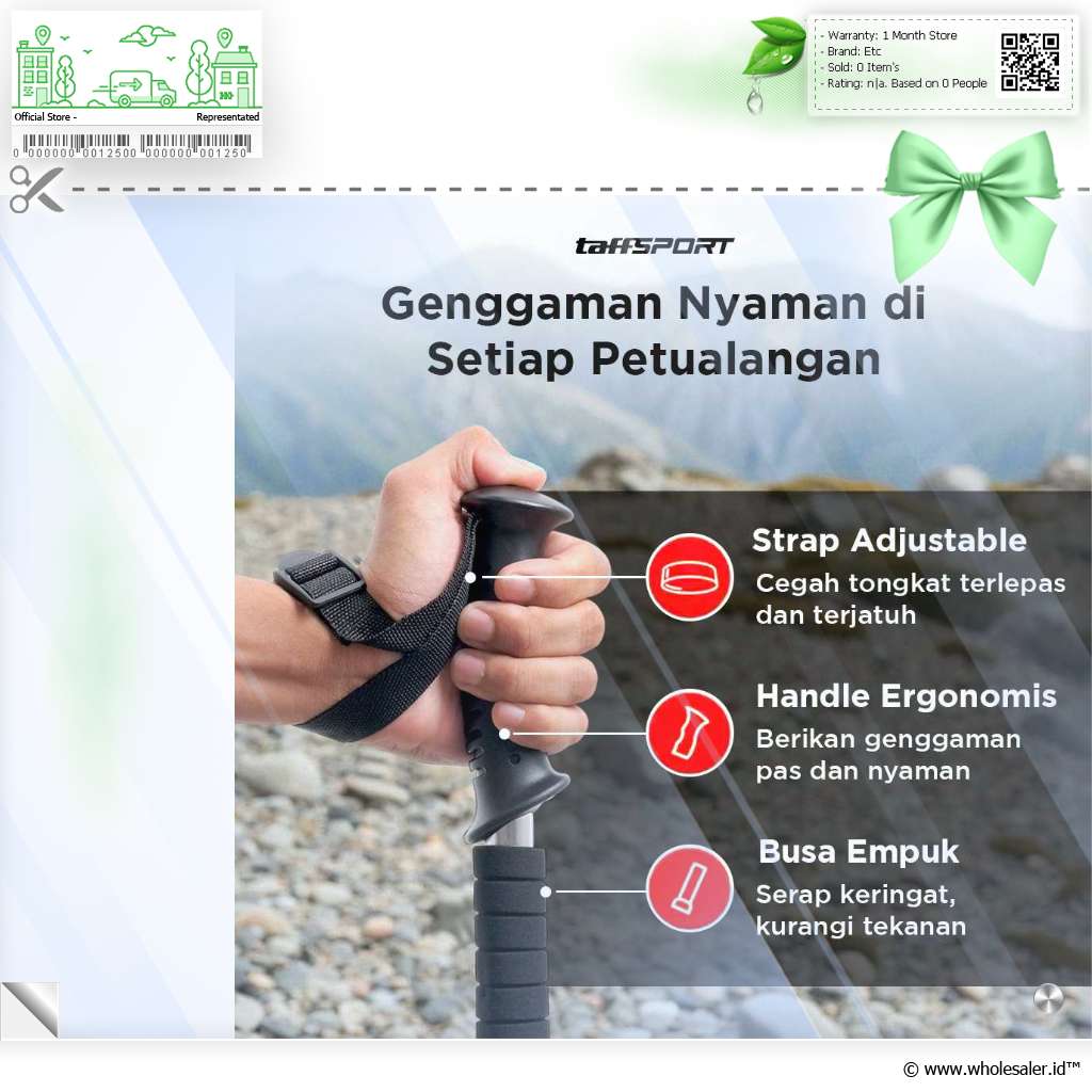 Trekking atau hiking dengan medan ekstrem yang tidak rata tidak lagi sulit karena Anda bisa menggunakan tongkat hiking dari TaffSPORT. Berfungsi sebagai alat bantu keseimbangan, tongkat ini kokoh untuk menopang berat tubuh. Model teleskopik memudahkan Anda membawa dan menggunakan trekking pole kapan saja.