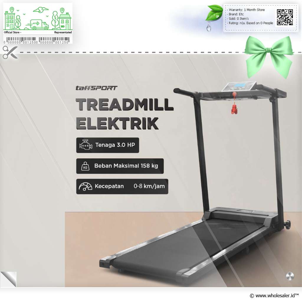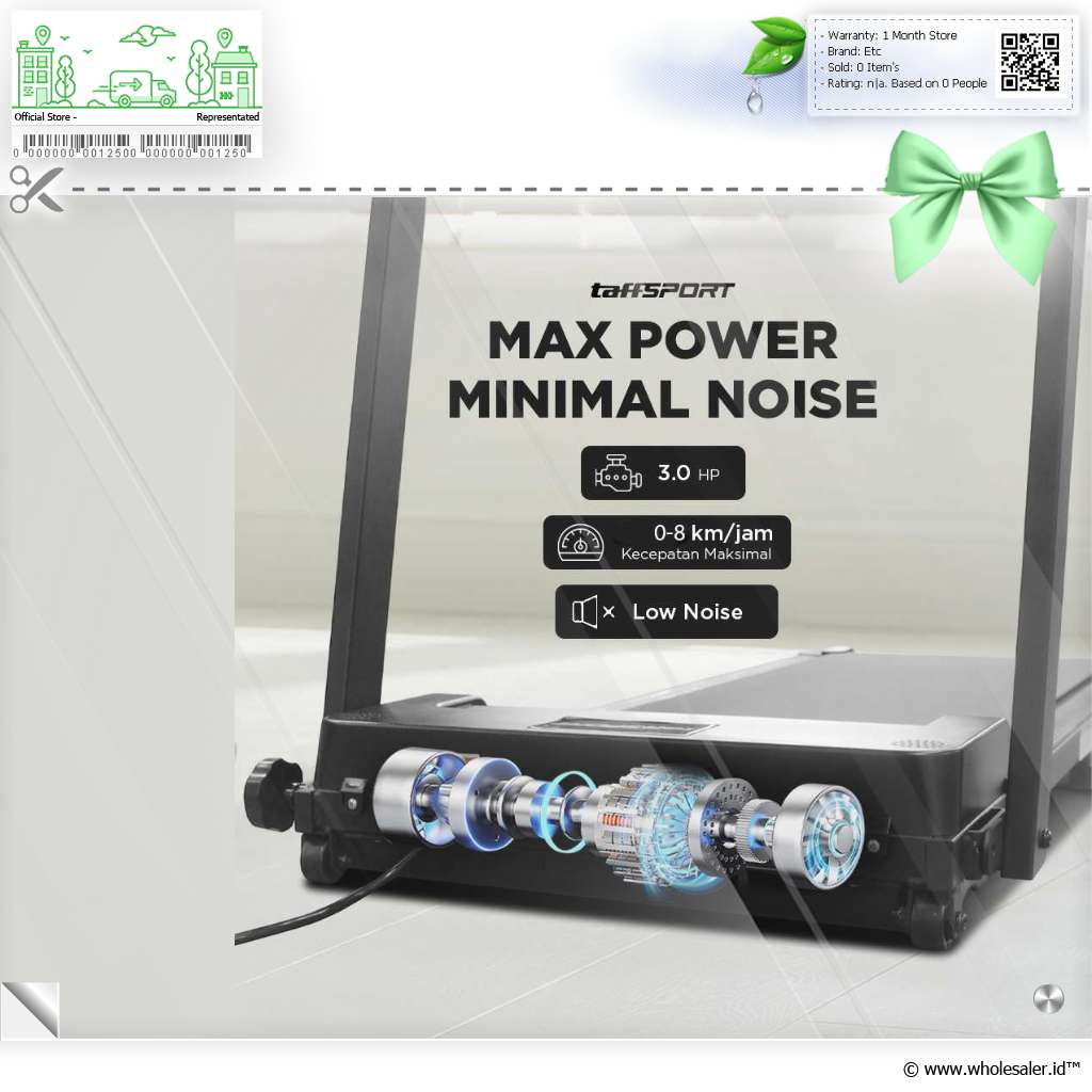 - 1 x TaffSPORT Treadmill Elektrik Alat Fitness Gym Silent Walking Pad 3 HP - FY21