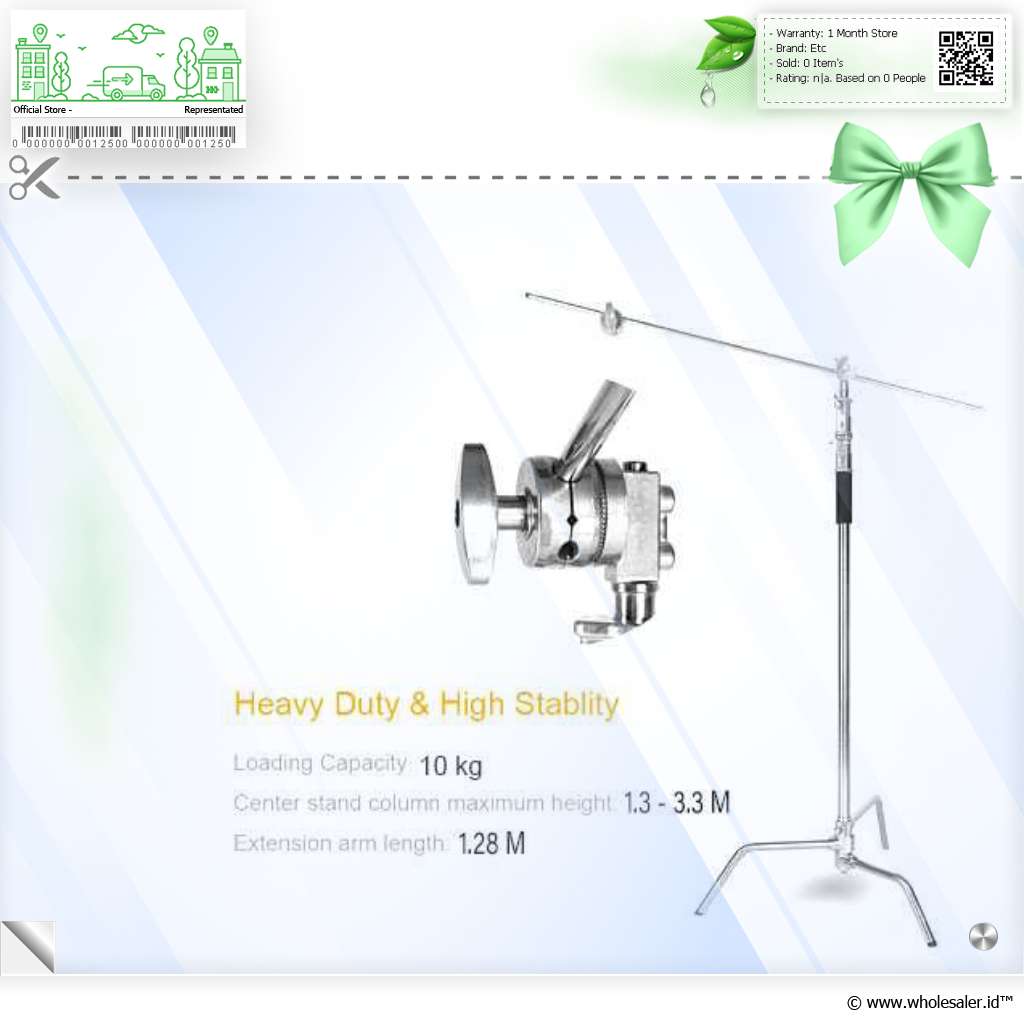 Desain C Stand Stand ini punya kaki-kaki yang stabil dan kuat. Mekanisme C stand ini sangat cocok menyangga peralatan lighting yang besar seperti reflektor. Anda tidak perlu cemas menempatkan perlengkapan fotografi Anda dengan stand ini. |