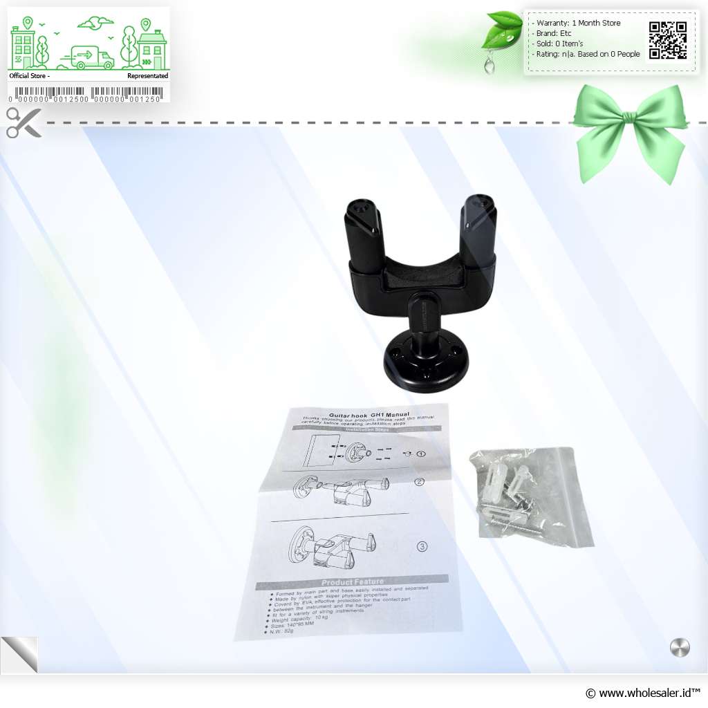 - 1 x TaffSTUDIO Gantungan Dinding Gitar Back Holder Wall Mount - GH1