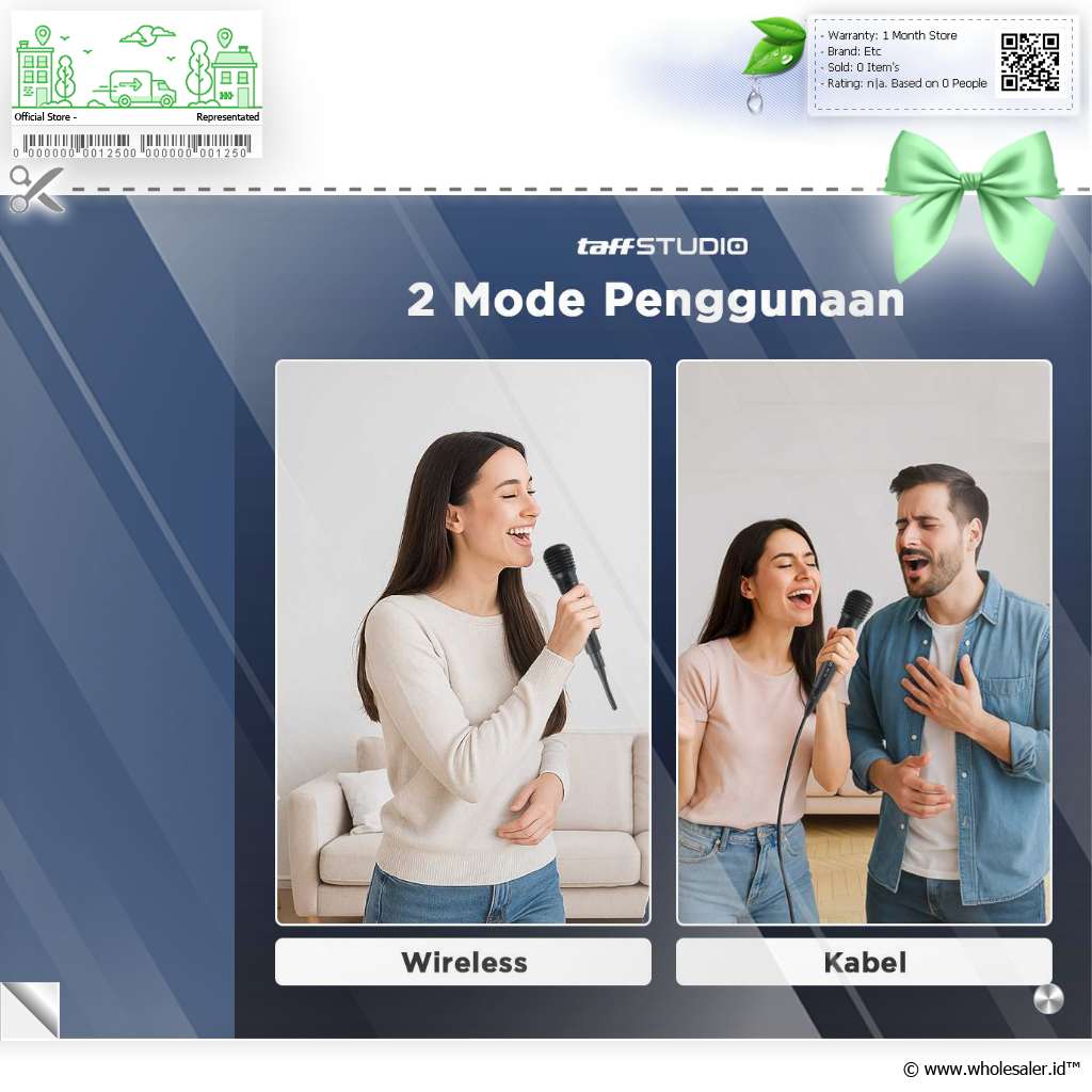 Informasi Produk TaffSTUDIO Mikrofon Karaoke Mic Profesional 2 in 1 Wireless Wired - WM-308
