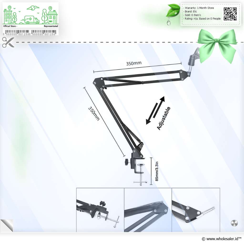 Dimensi Lengan Stand | : | Hingga 700 mm (350 mm per lengan) Mic |