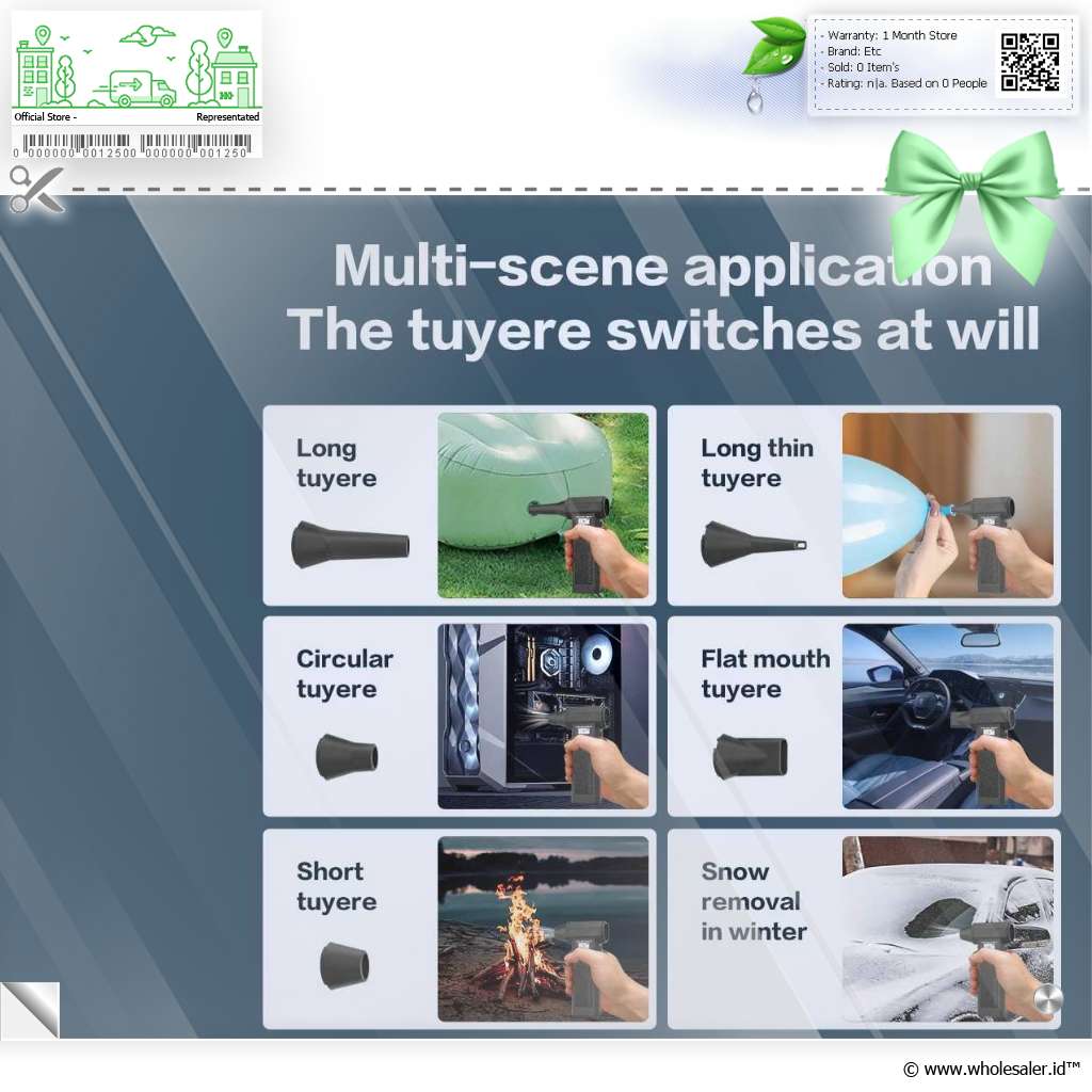 | Bersihkan Debu dengan Kekuatan Turbo Dengan motor brushless berkecepatan 138000 RPM, daya 245 W, dan turbin logam CNC, air duster blower yang satu ini menghasilkan hembusan udara super kuat. |